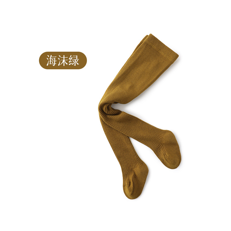 【名称】秋女童连裤袜韩系精梳棉细竖条针织袜裤儿童宝宝纯色加档连脚袜子
