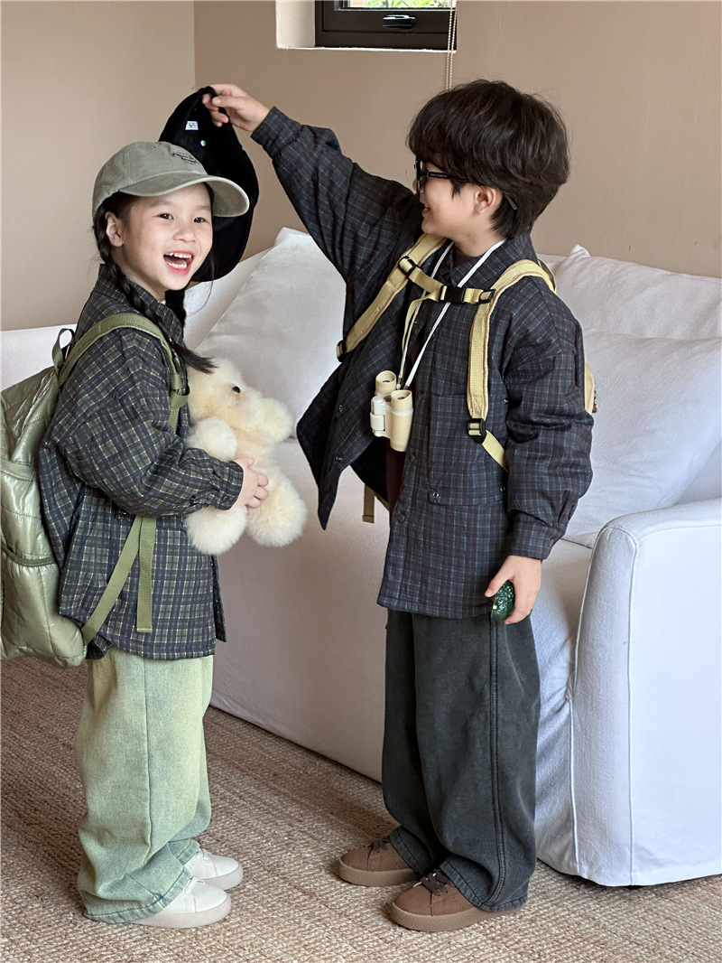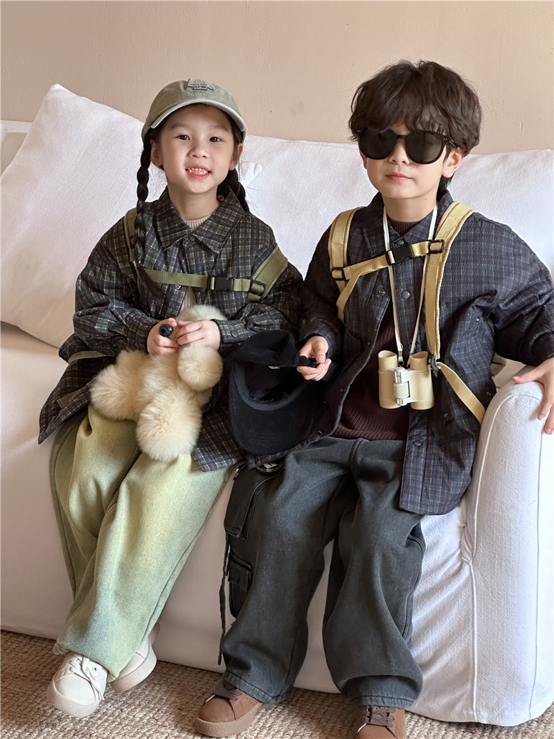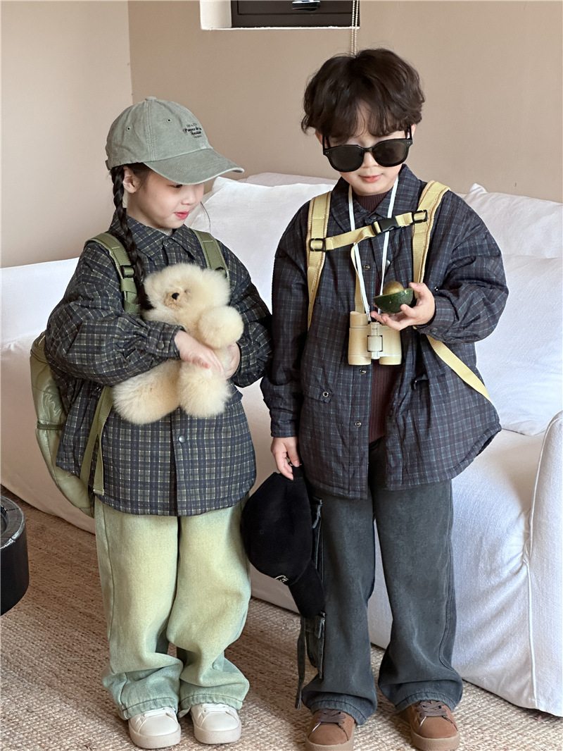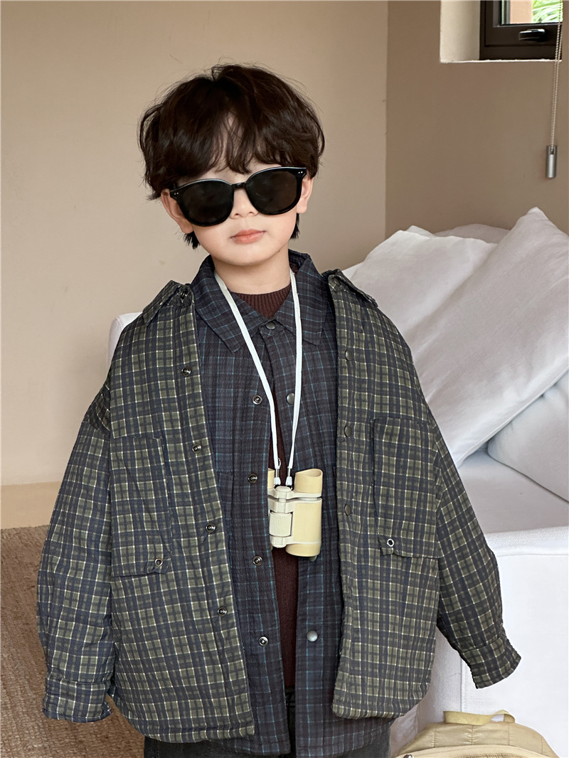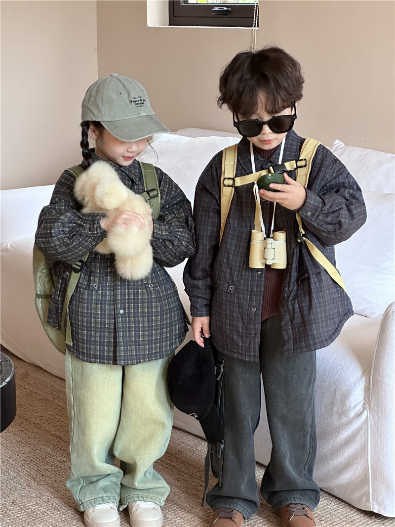 아동용 셔츠 2024 겨울 신작 아동복 아동용 퀼트 셔츠 소년 소녀 캐주얼 면 셔츠 두껍고 따뜻하며 트렌디합니다.스토어 가기