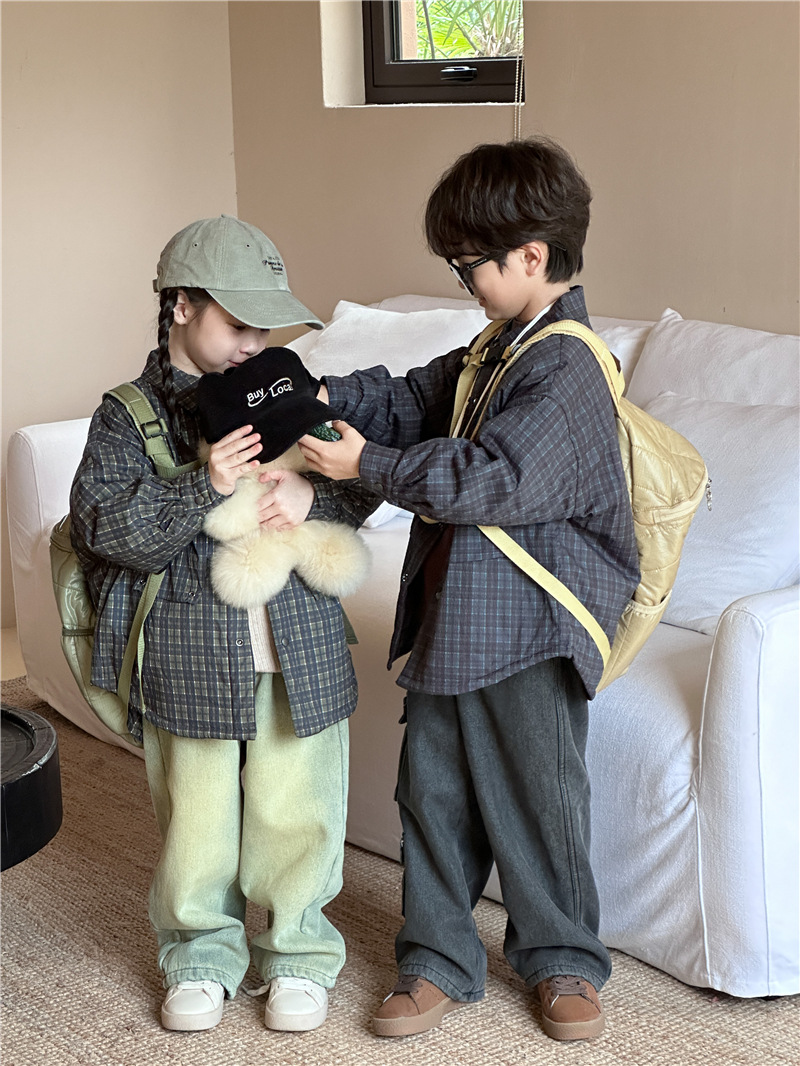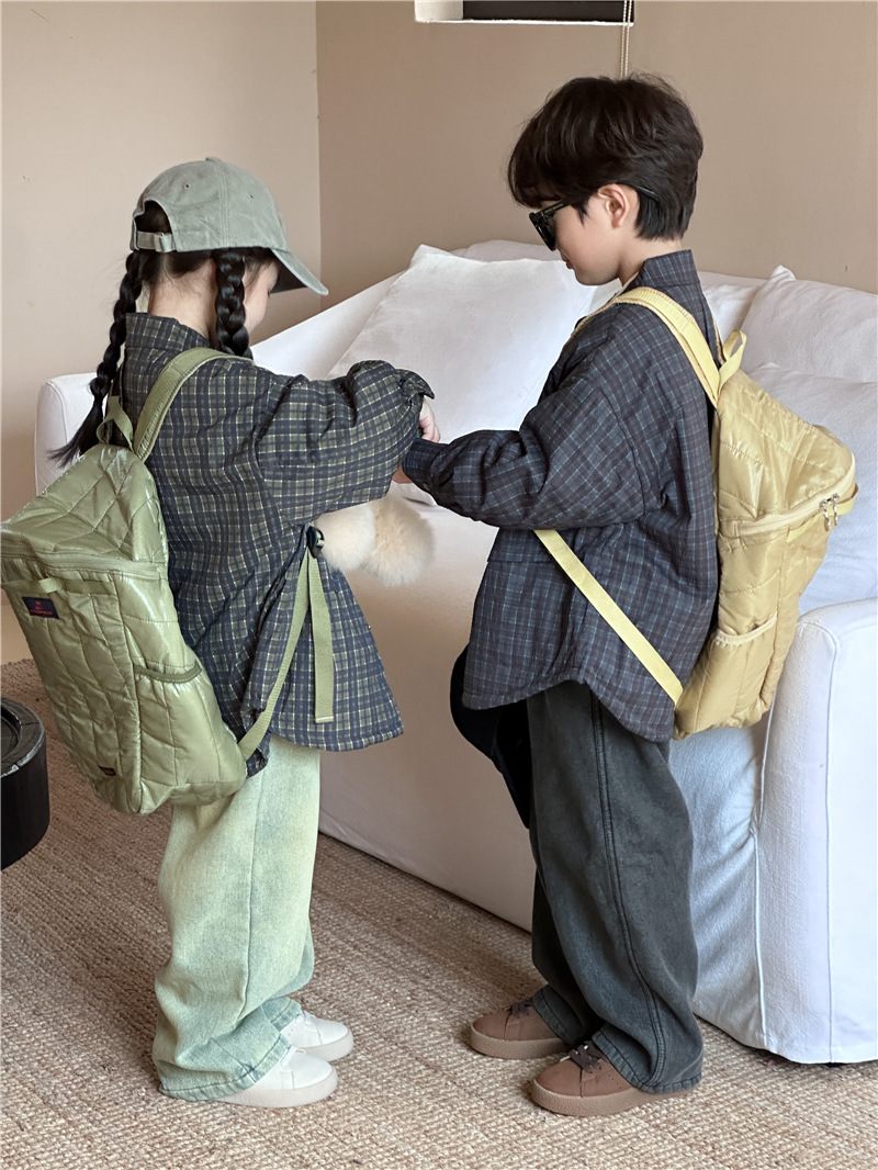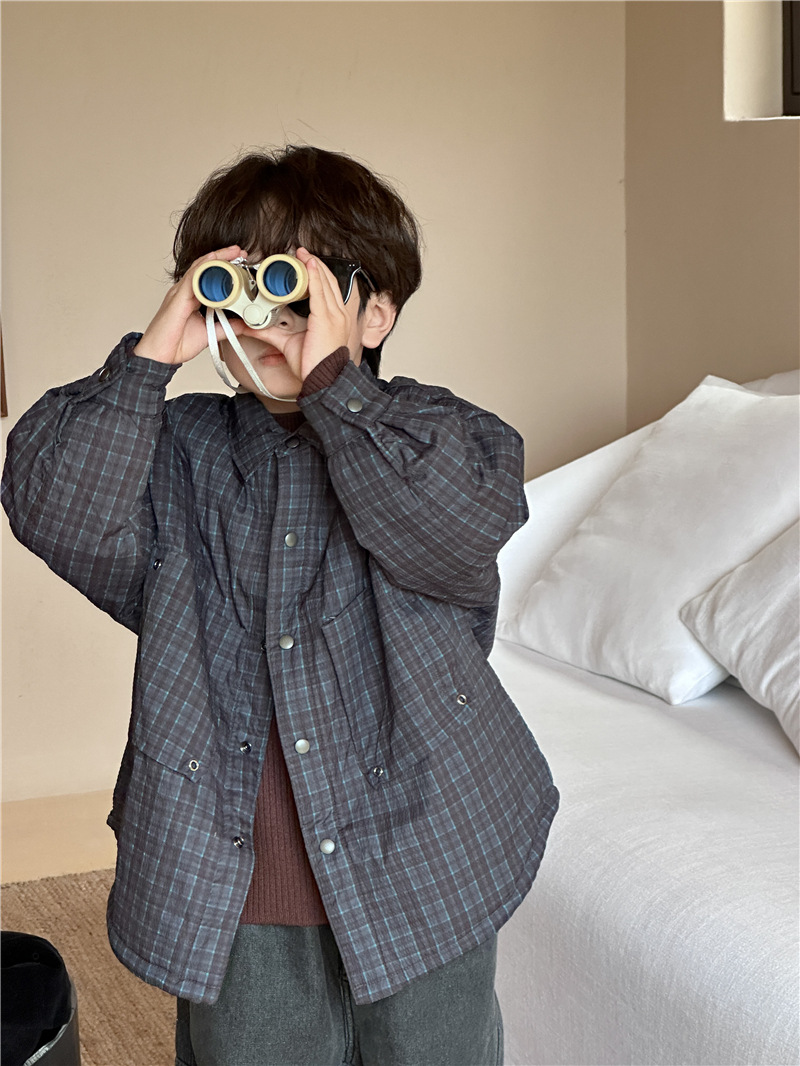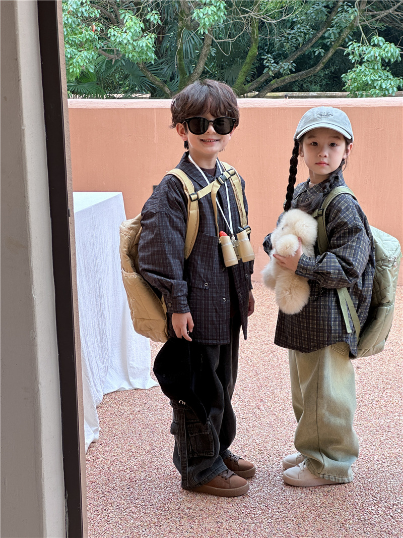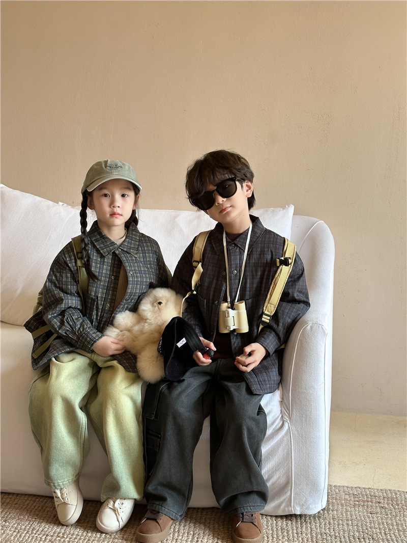 아동용 셔츠 2024 겨울 신작 아동복 아동용 퀼트 셔츠 소년 소녀 캐주얼 면 셔츠 두껍고 따뜻하며 트렌디합니다.스토어 가기