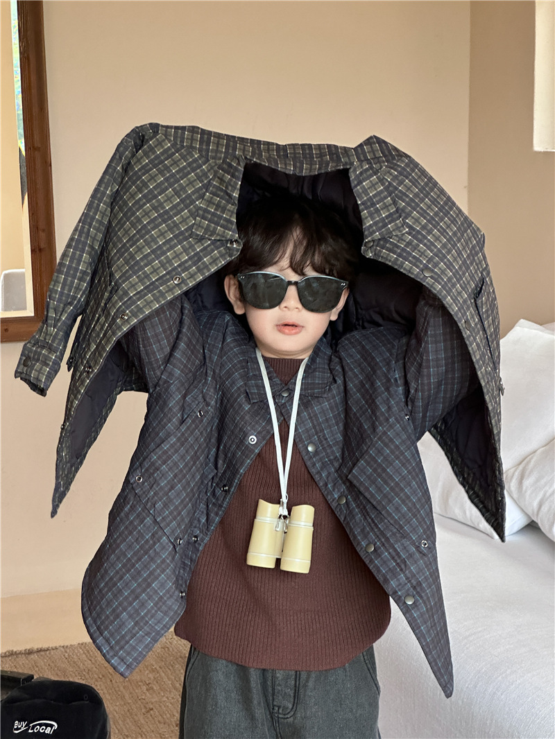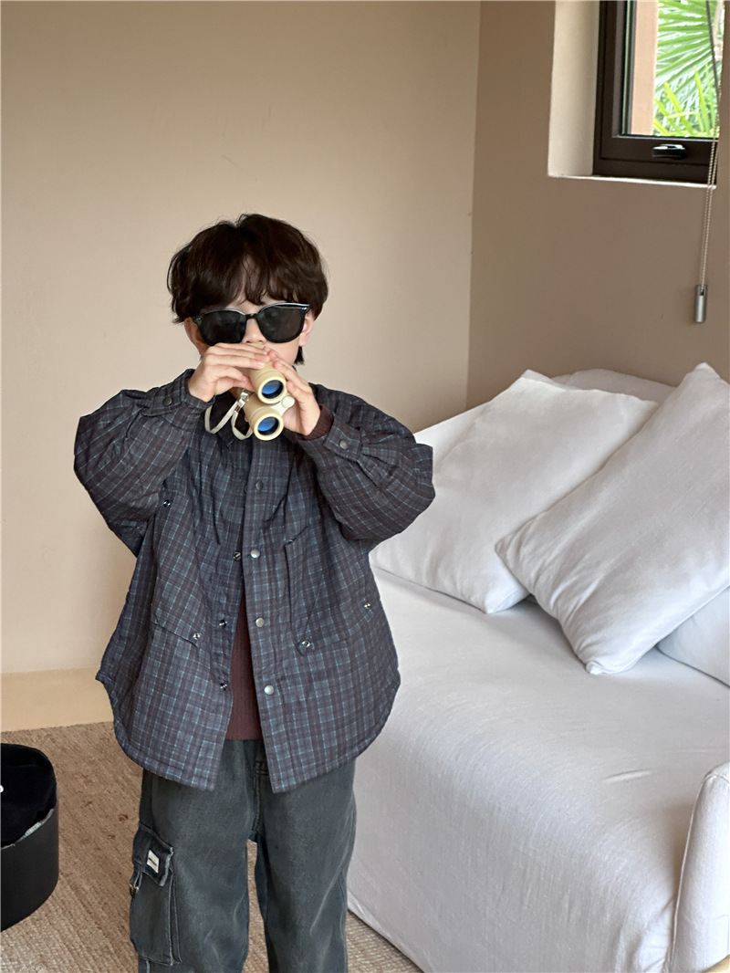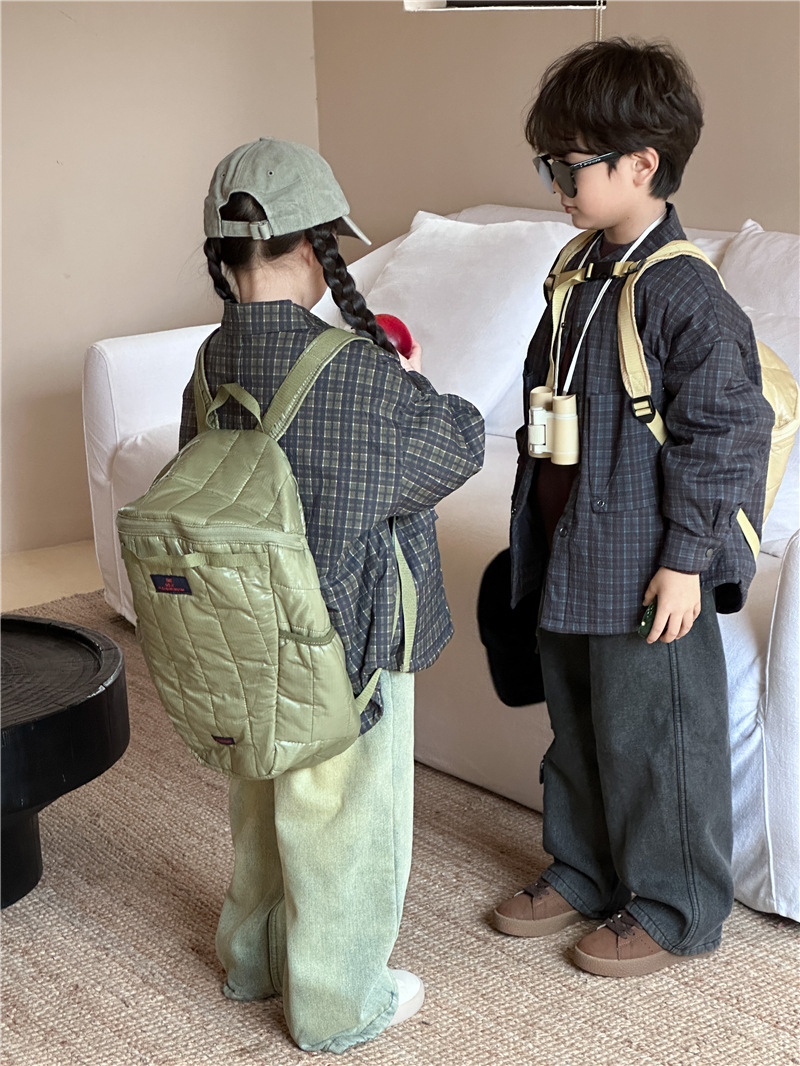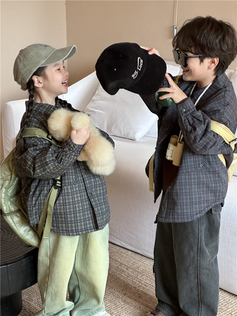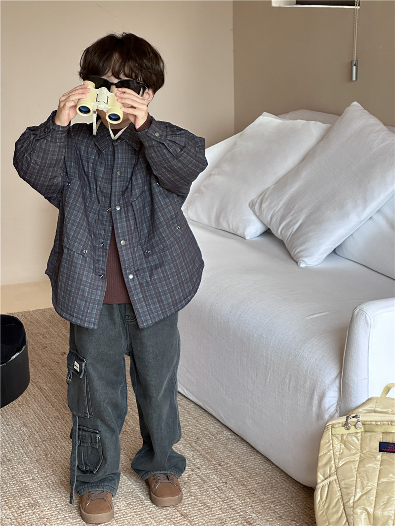 아동용 셔츠 2024 겨울 신작 아동복 아동용 퀼트 셔츠 소년 소녀 캐주얼 면 셔츠 두껍고 따뜻하며 트렌디합니다.스토어 가기