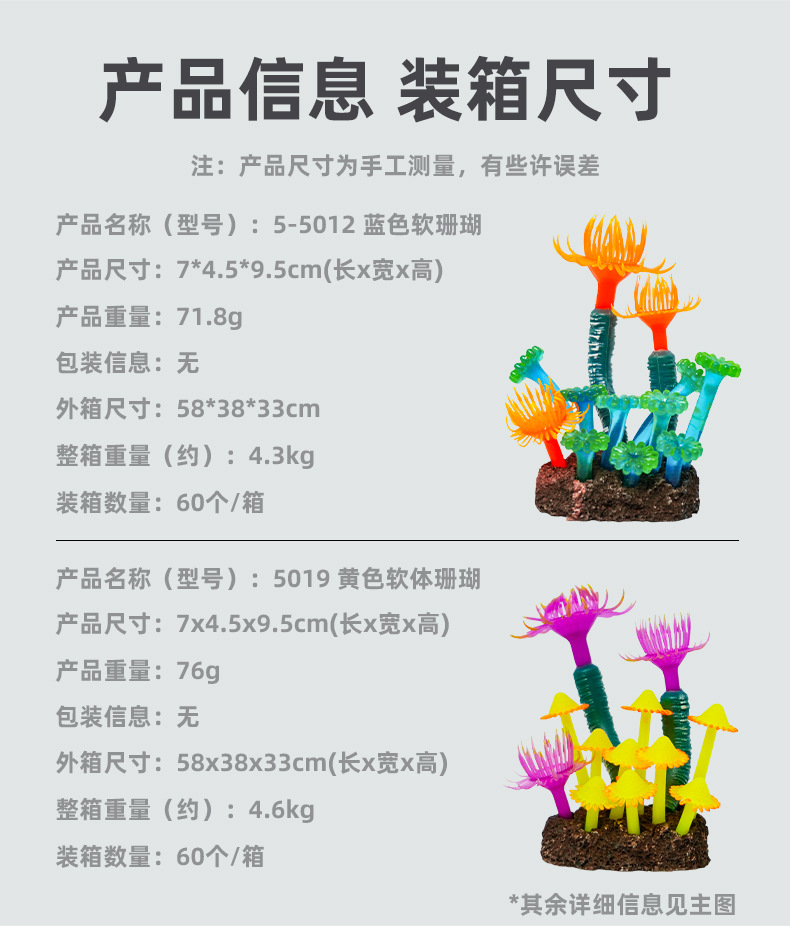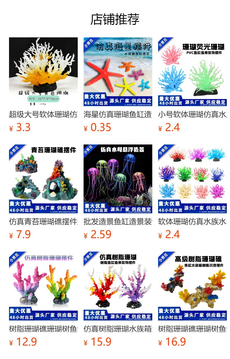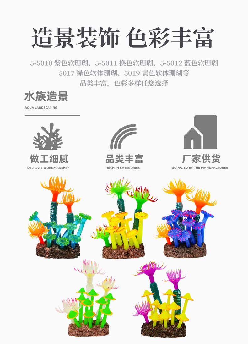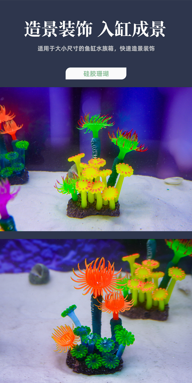 새로운 어항 장식품 화려한 소프트 산호 수초 어항 장식 형광 실리콘 산호 나무 공예품스토어 가기