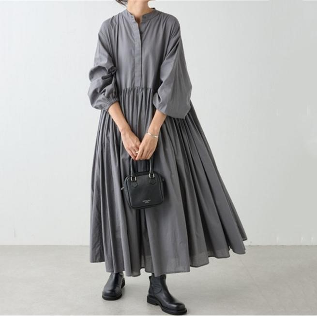2023 일본 롯데 면과 린넨 원피스 새로운 한국어 긴 느슨한 플러스 사이즈 주름 캐주얼 롱 원피스스토어 가기