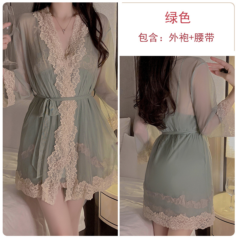 DZ Guiruo 스위트 메쉬 레이스 딥 V 플러스 가슴 패드 순수한 욕망 서스펜더 잠옷 가운 플러스 사이즈 홈 세트 P3772
