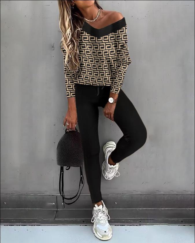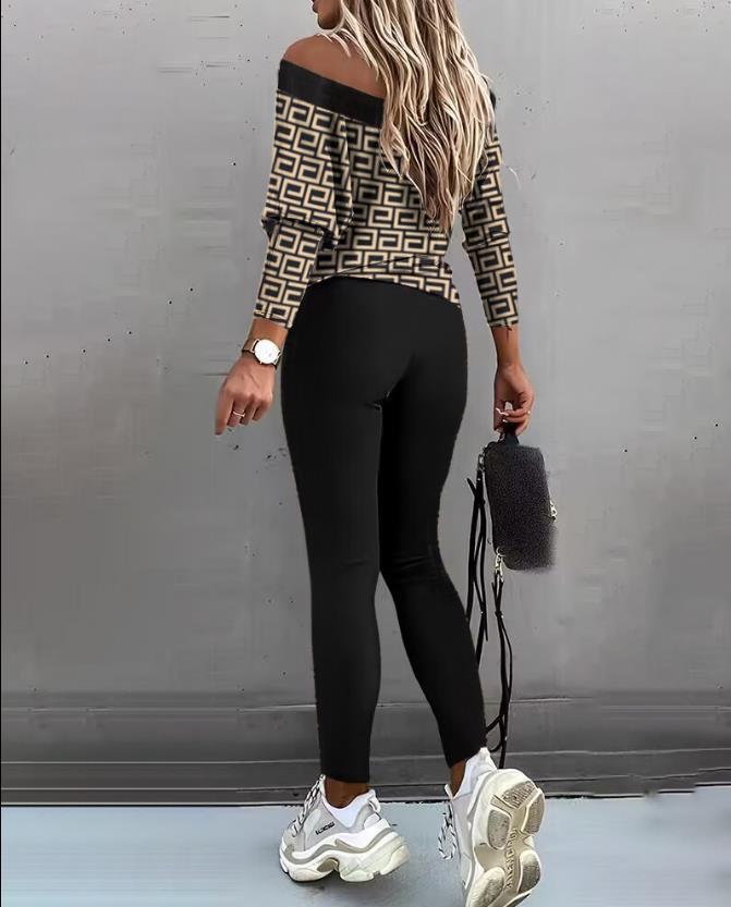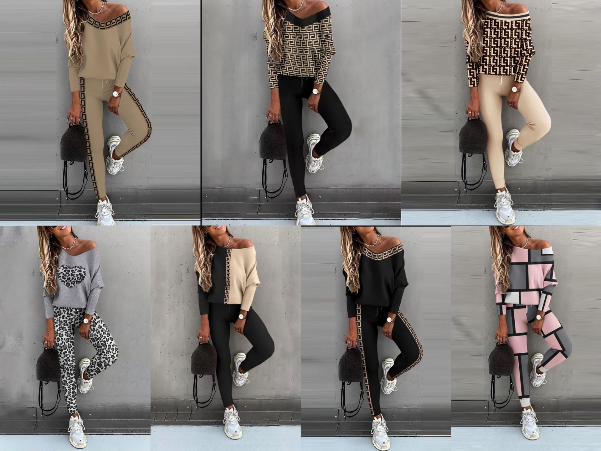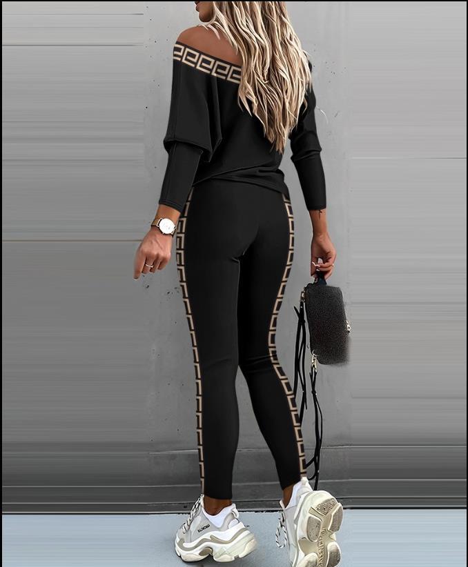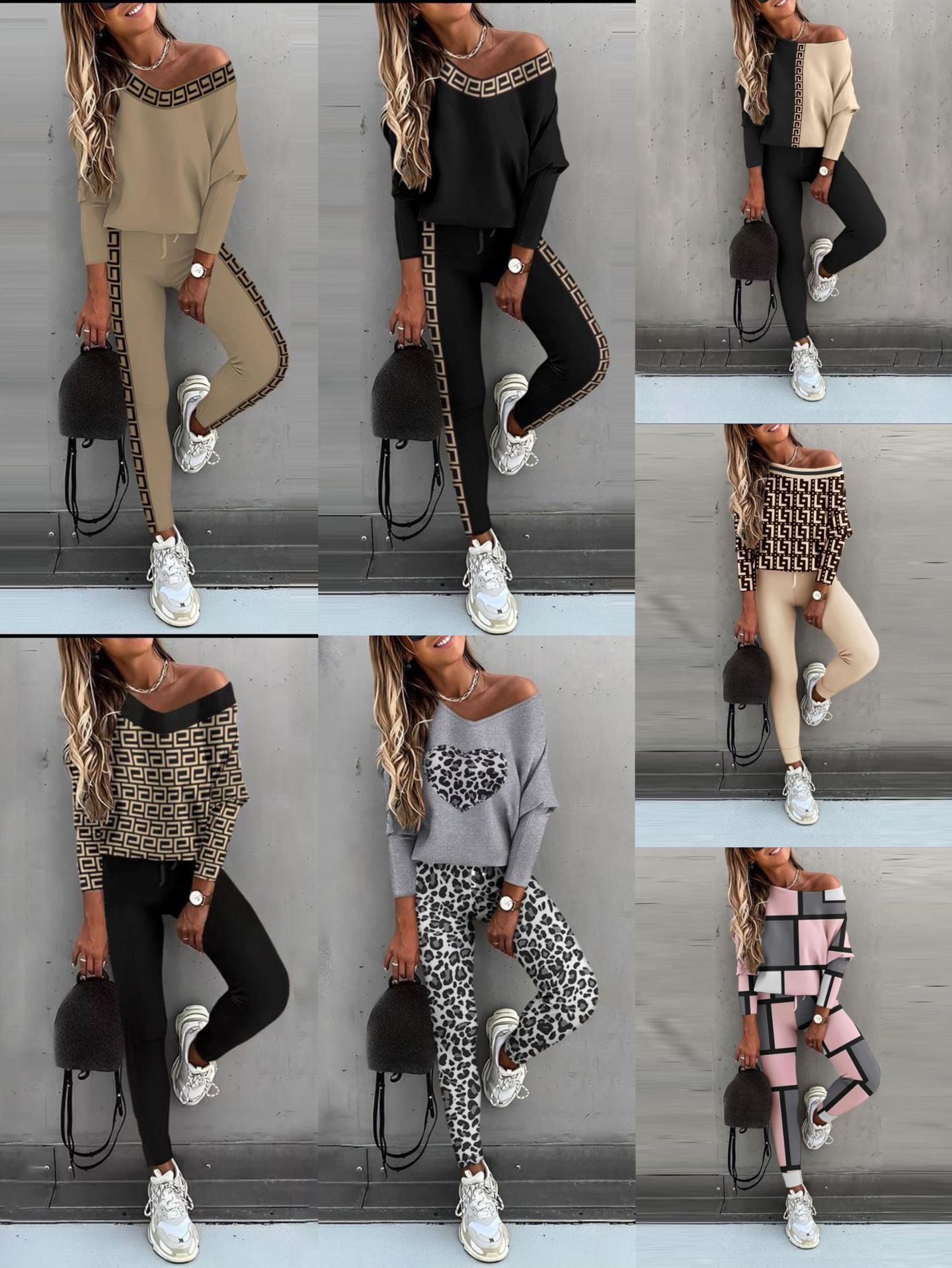 Z603 유럽과 미국 여성 의류 2023 가을과 겨울 새로운 아마존 AliExpress 박쥐 긴팔 바지 패션 투피스 세트스토어 가기