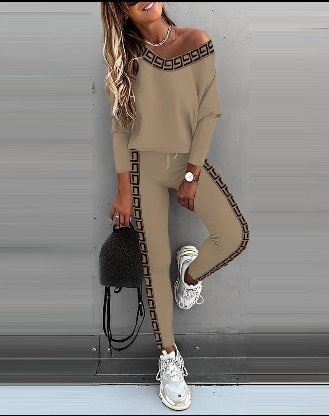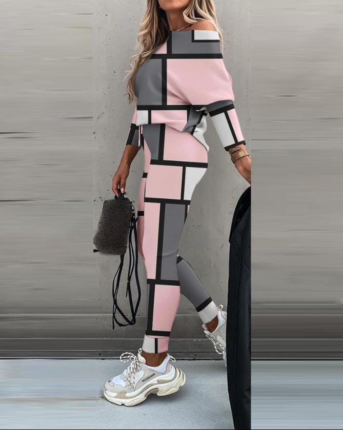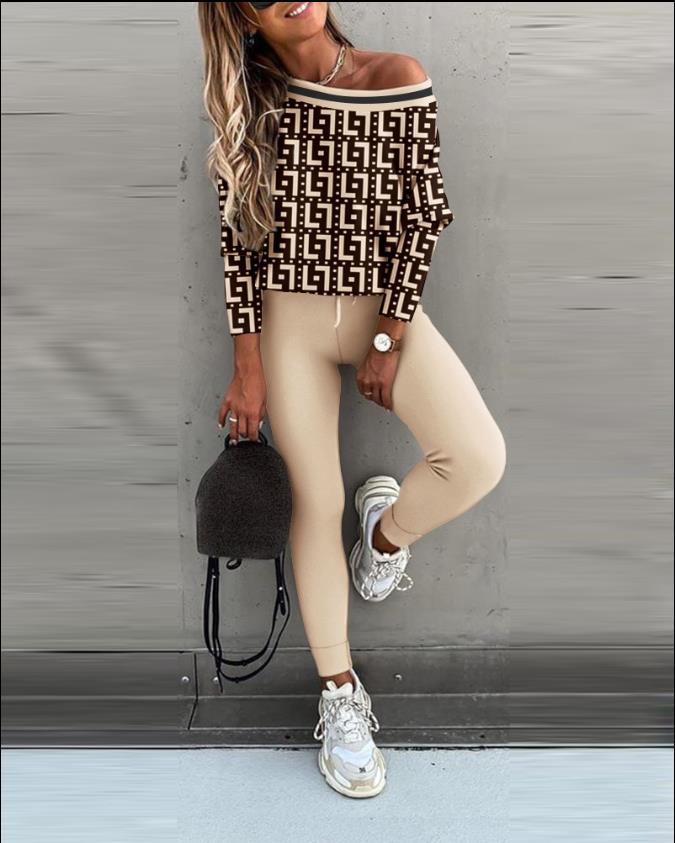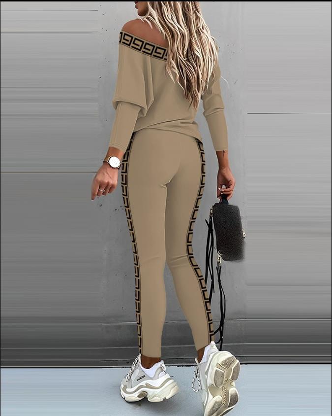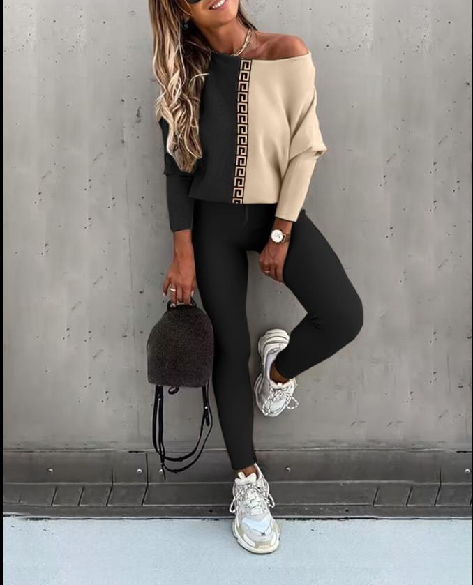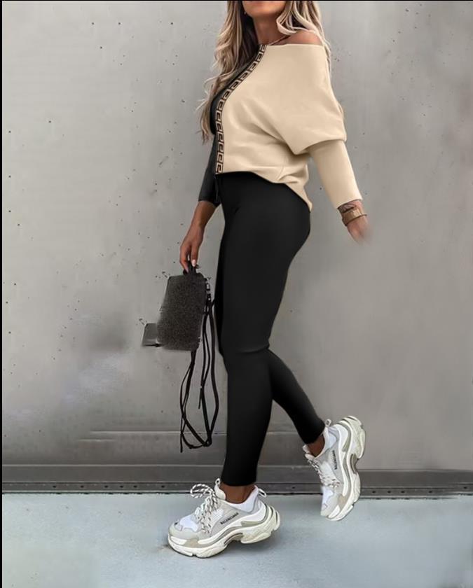 Z603 유럽과 미국 여성 의류 2023 가을과 겨울 새로운 아마존 AliExpress 박쥐 긴팔 바지 패션 투피스 세트