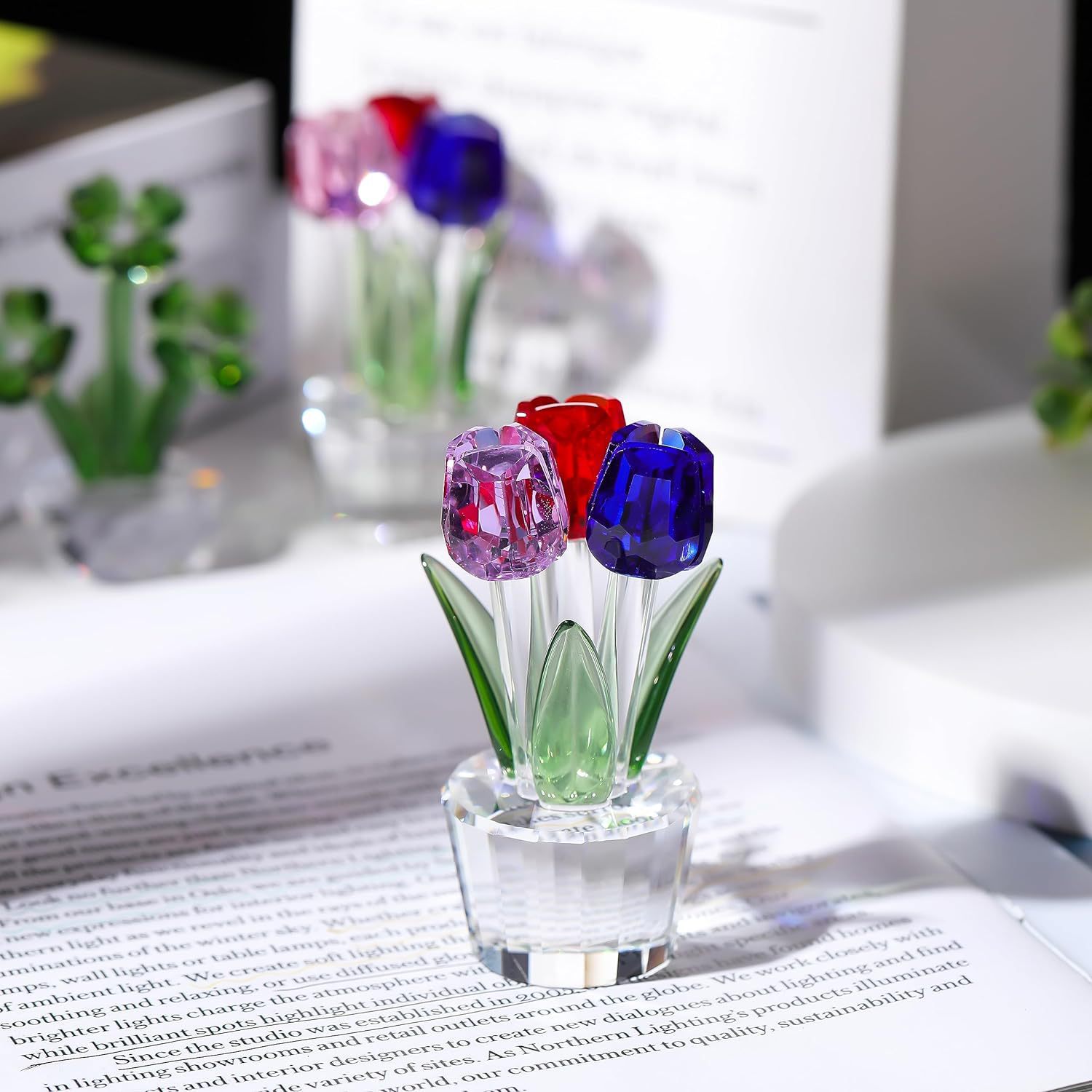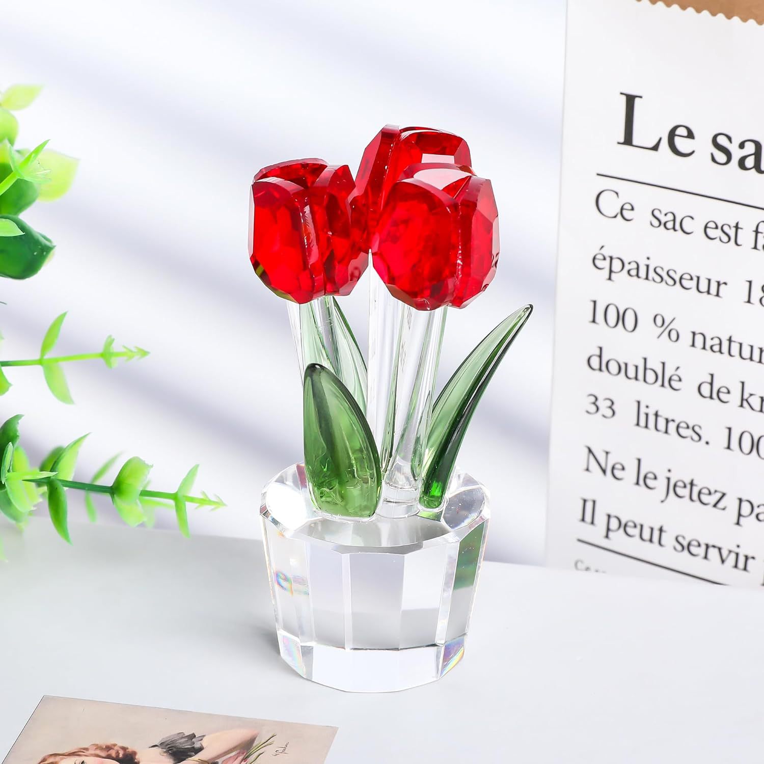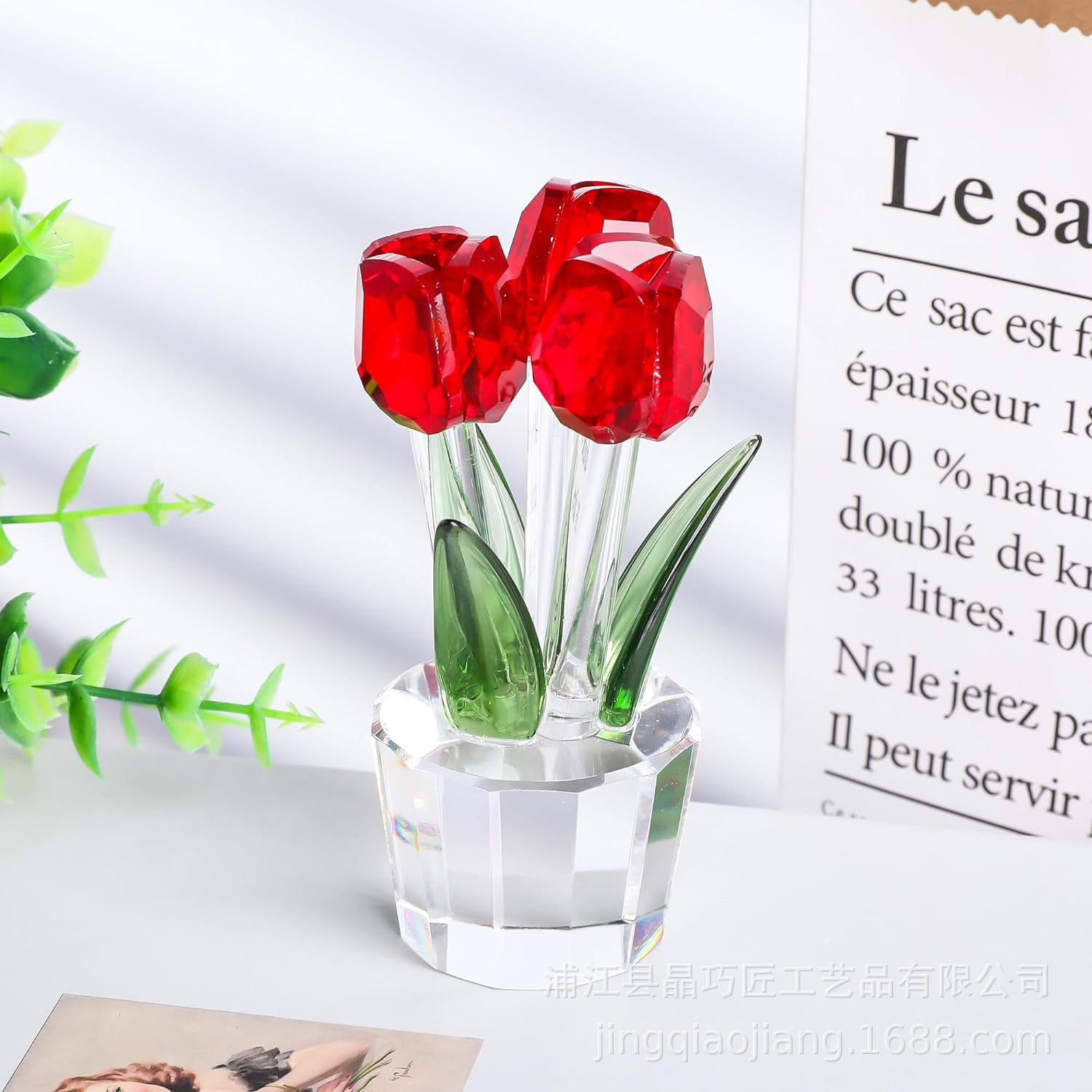국경을 넘어 인기 있는 튤립 크리스탈 공예품 장식품 제조업체 도매 가정 거실 테이블 꽃 장식스토어 가기