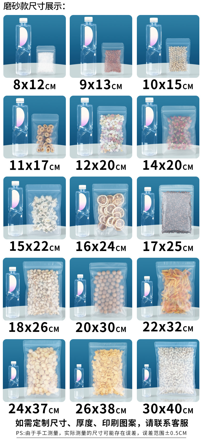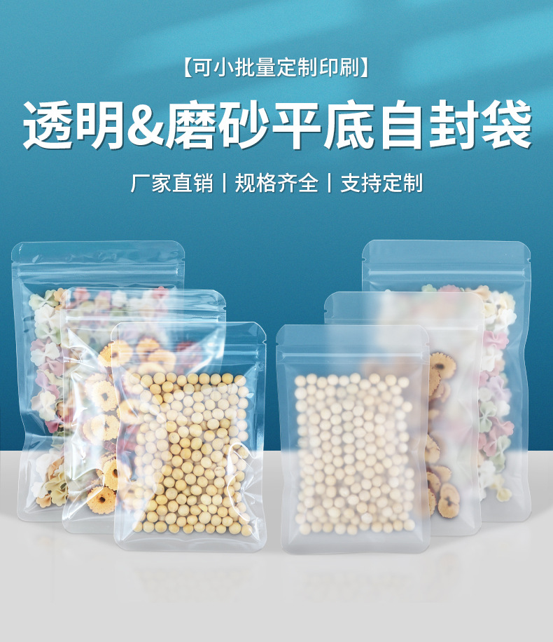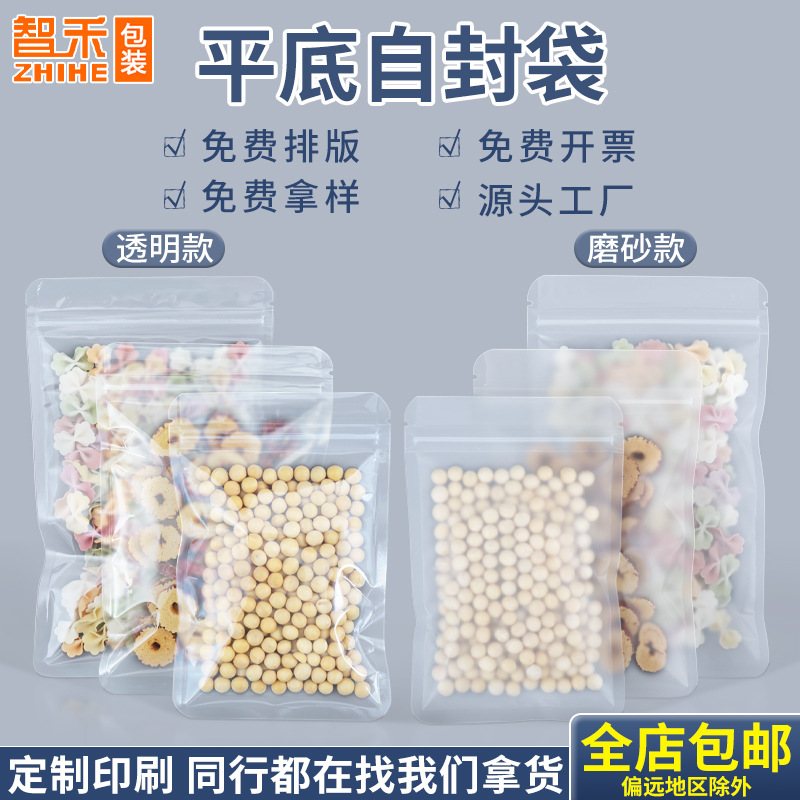 맞춤형 16 실크 매트 스낵 플랫 바닥 지퍼백, 3면 밀봉 젖빛 식품 밀봉 백, 투명 곡물 비닐 밀봉 백