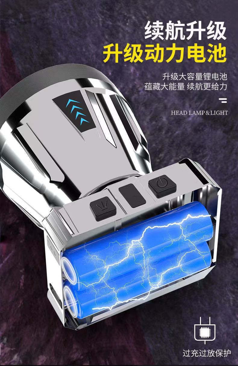 LED 전조등 강한 빛 장거리 충전식 방수 슈퍼 밝은 머리 장착 야간 낚시 램프 광부의 램프 슈퍼 긴 지구력 손전등