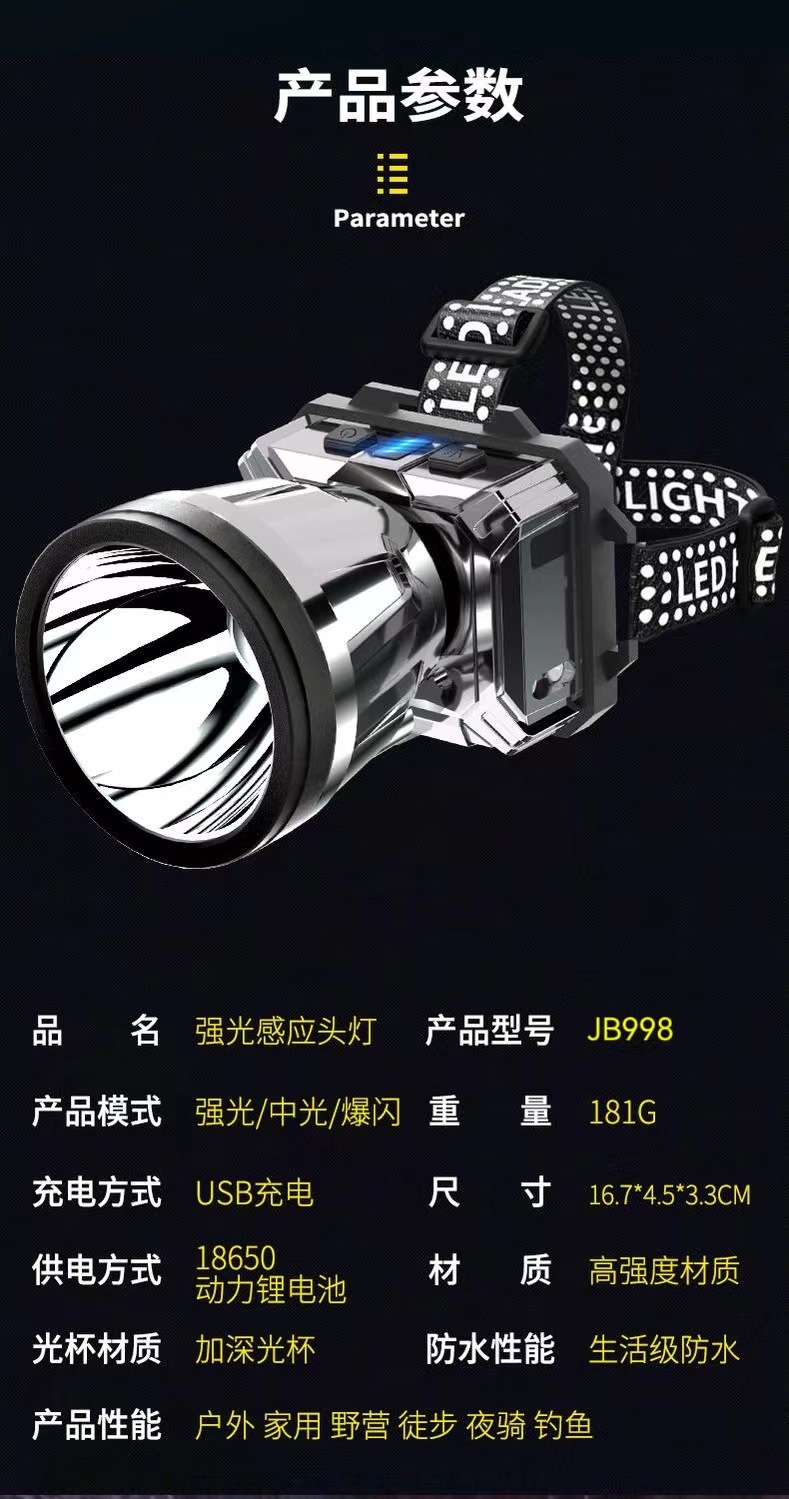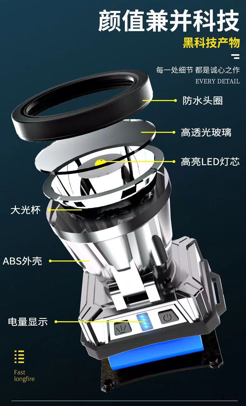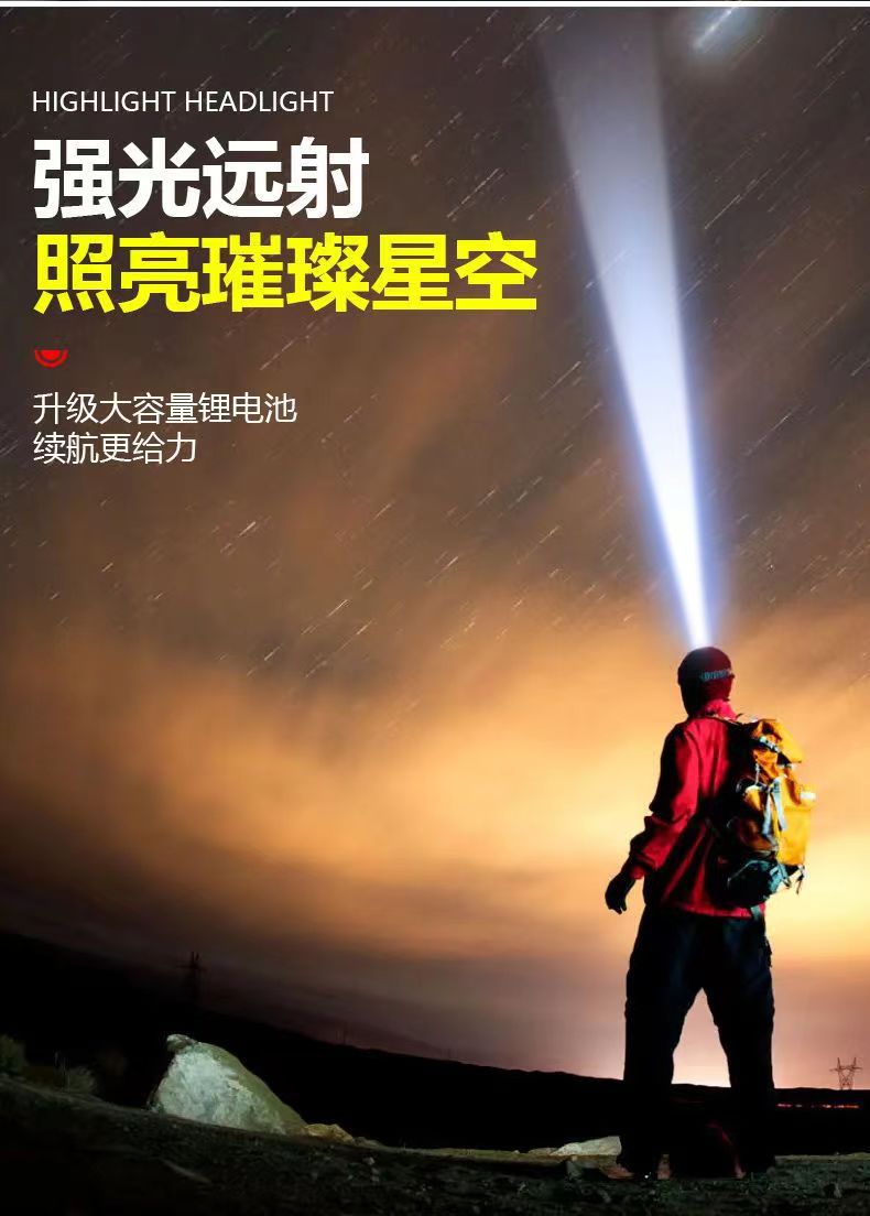 LED 전조등 강한 빛 장거리 충전식 방수 슈퍼 밝은 머리 장착 야간 낚시 램프 광부의 램프 슈퍼 긴 지구력 손전등스토어 가기