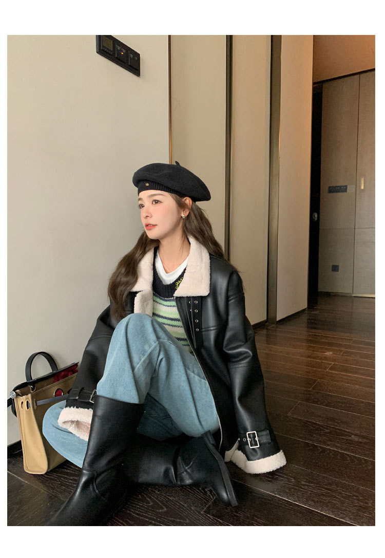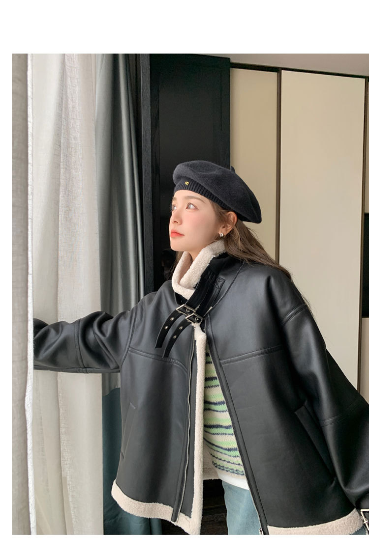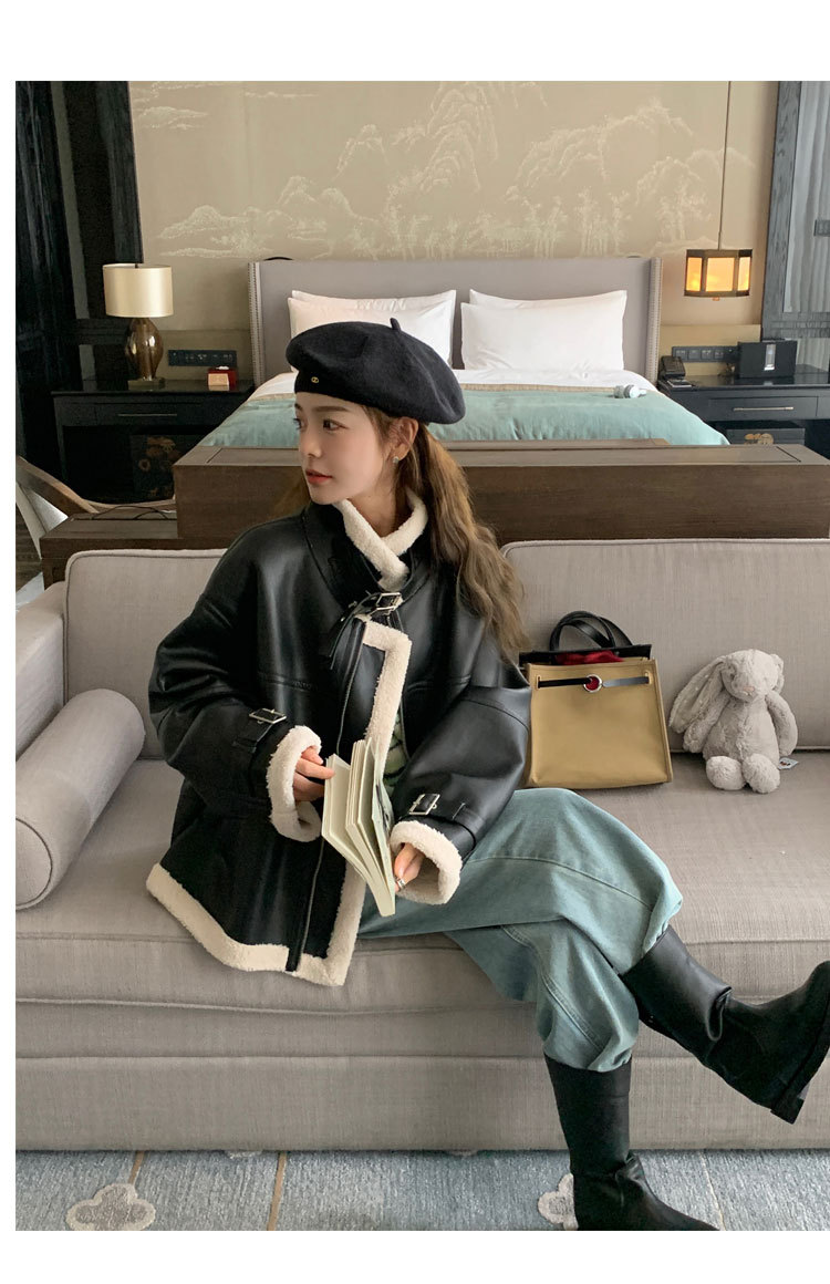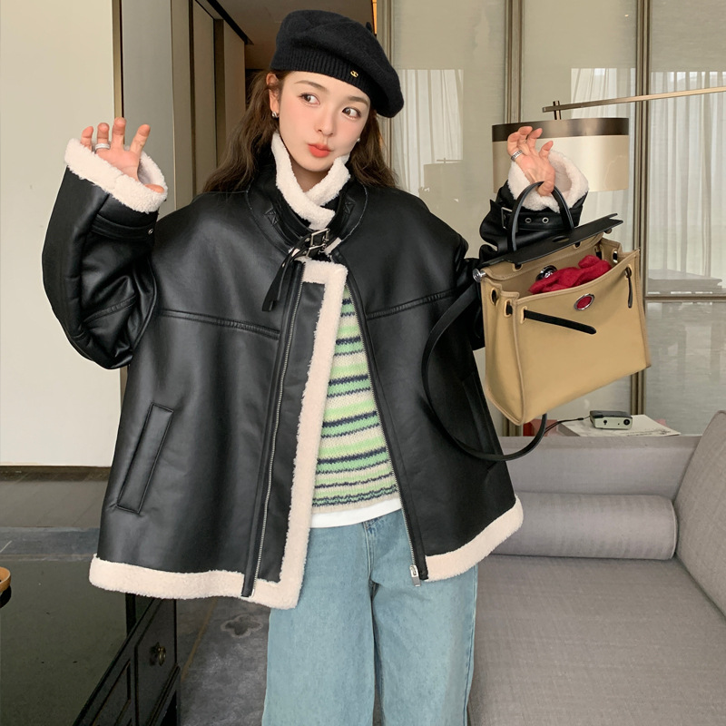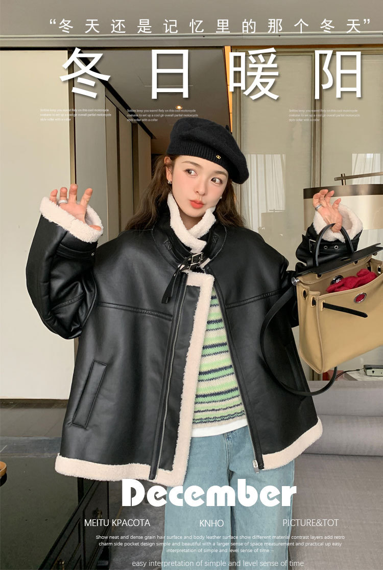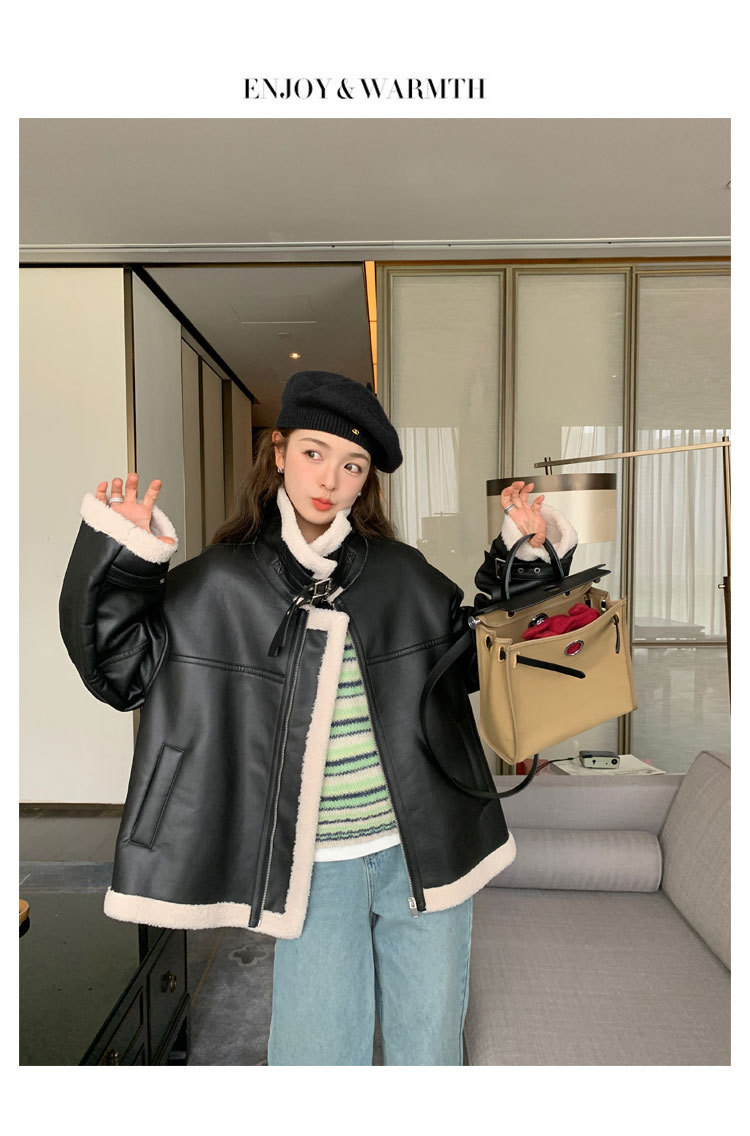 올해 유행하는 여성용 퍼 일체형 겨울 코트, 벨벳 안감과 두꺼운 소재로 2024년 신상 고급 디자인 가죽 자켓 및 면옷스토어 가기