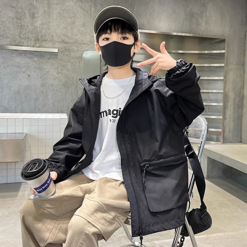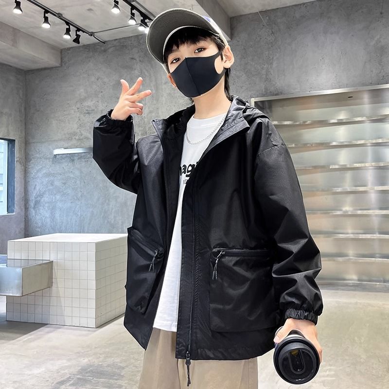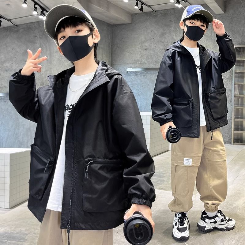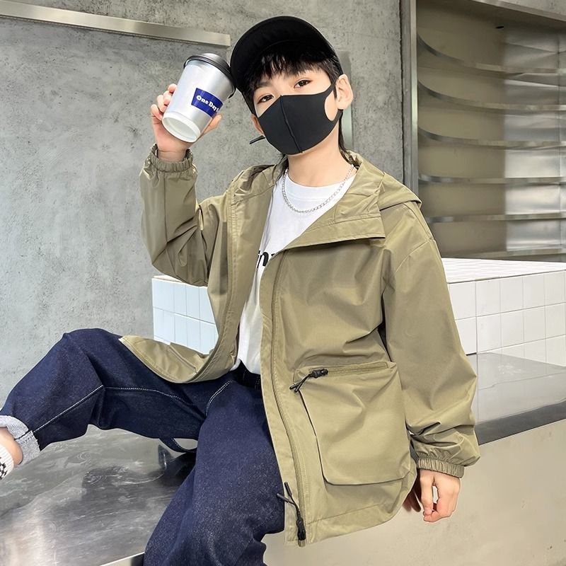 선정 된 새로운 소년 재킷 봄과 가을 재킷 어린이 중형 및 대형 어린이 후드 윈드 브레이커 소년 방풍 재킷 패션스토어 가기