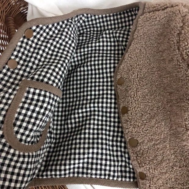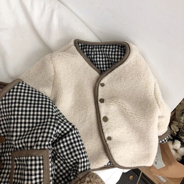 가을과 겨울 남성과 여성의 어린이 코트 아기의 서양 스타일 어린이 개인 유행 브랜드 양면 기모 두꺼운 격자 무늬 모직 스웨터스토어 가기