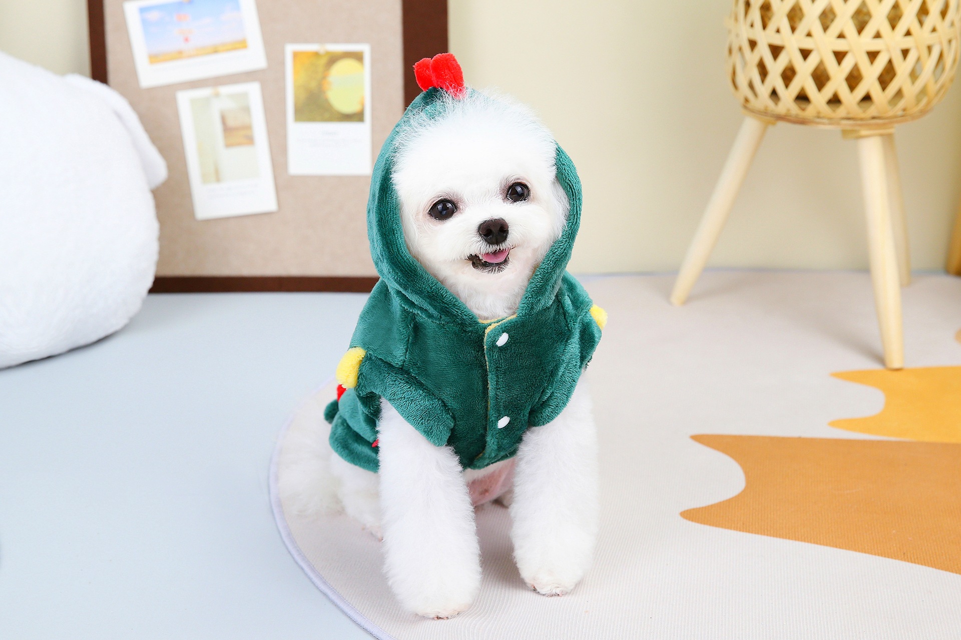 애완견 개 옷 중대형 개 코기 가을과 겨울 래브라도 골든 플란넬 공룡 스타일 코트스토어 가기