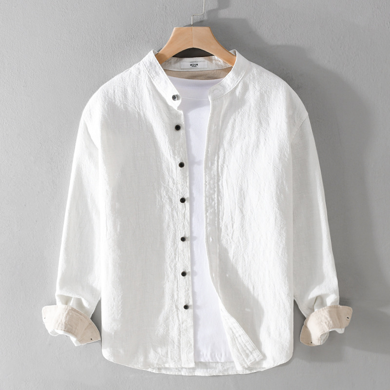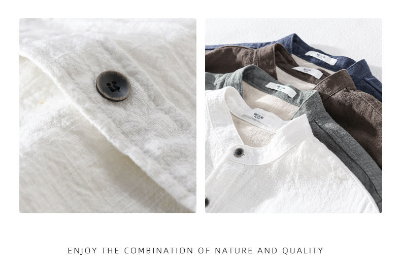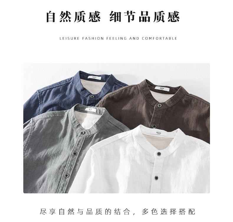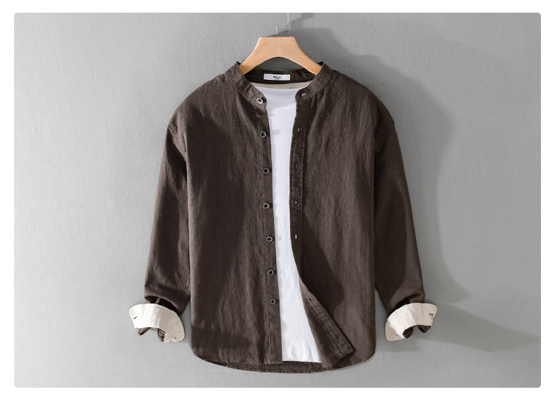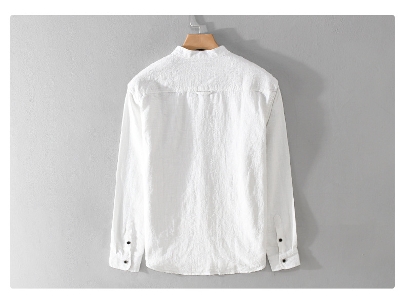 봄과 가을 남성용 심플한 면과 린넨 긴팔 셔츠 예술적인 캐주얼 루즈한 인기 청소년 올매치 남성 셔츠 9896스토어 가기