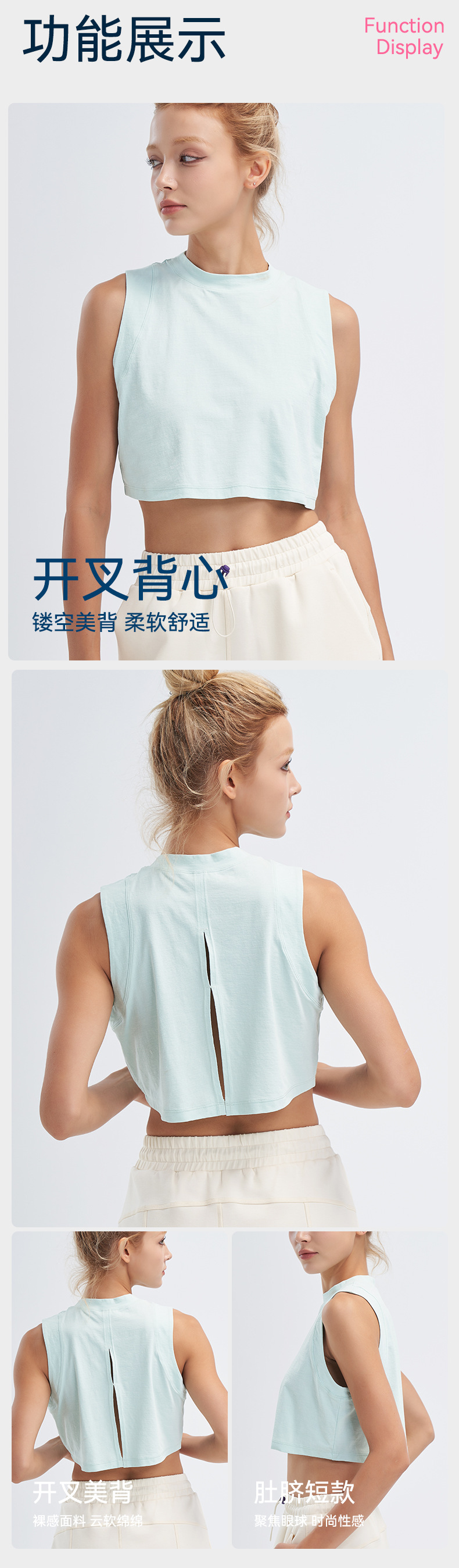 新款螺纹瑜伽运动背心蝴蝶后背开叉休闲健身上衣时尚镂空无袖美背
