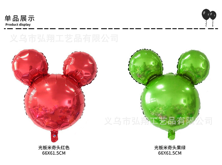 새로운 스타일의 단색 26 인치 라이트 보드 미키 헤드 알루미늄 필름 풍선 생일 파티 장식 미니 만화 모양 도매