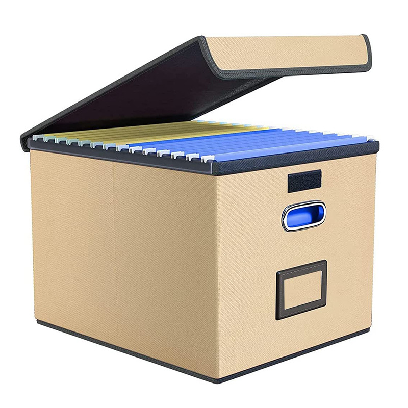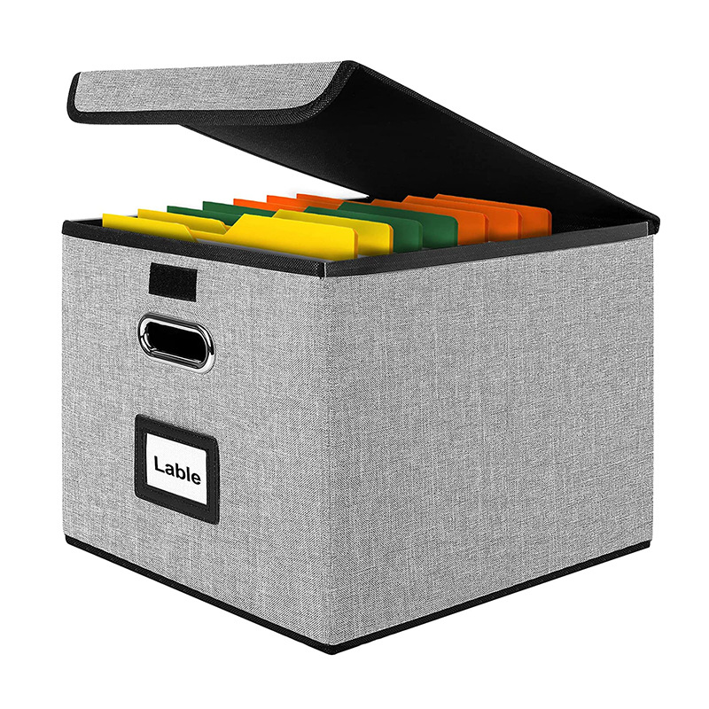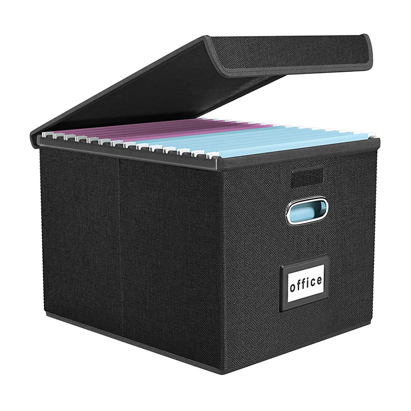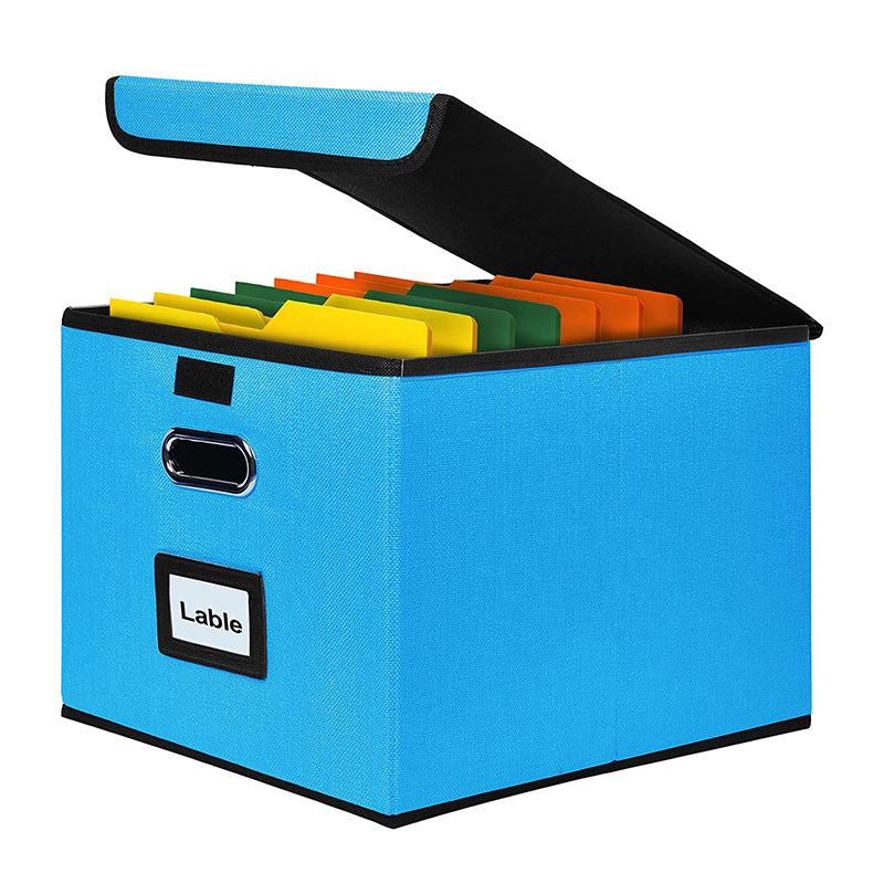 뚜껑 책 주최자 빠른 낚시 클립 분류 보관 상자가있는 접이식 패브릭 사무실 문서 보관 상자
