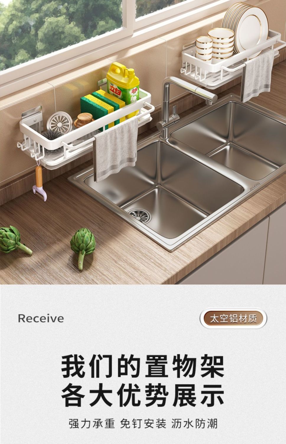 펀치없는 헝겊 랙 주방 수납 랙 조미료 선반 싱크대 싱크대 접시 천 벽 매달려 배수 랙 보관 유물스토어 가기