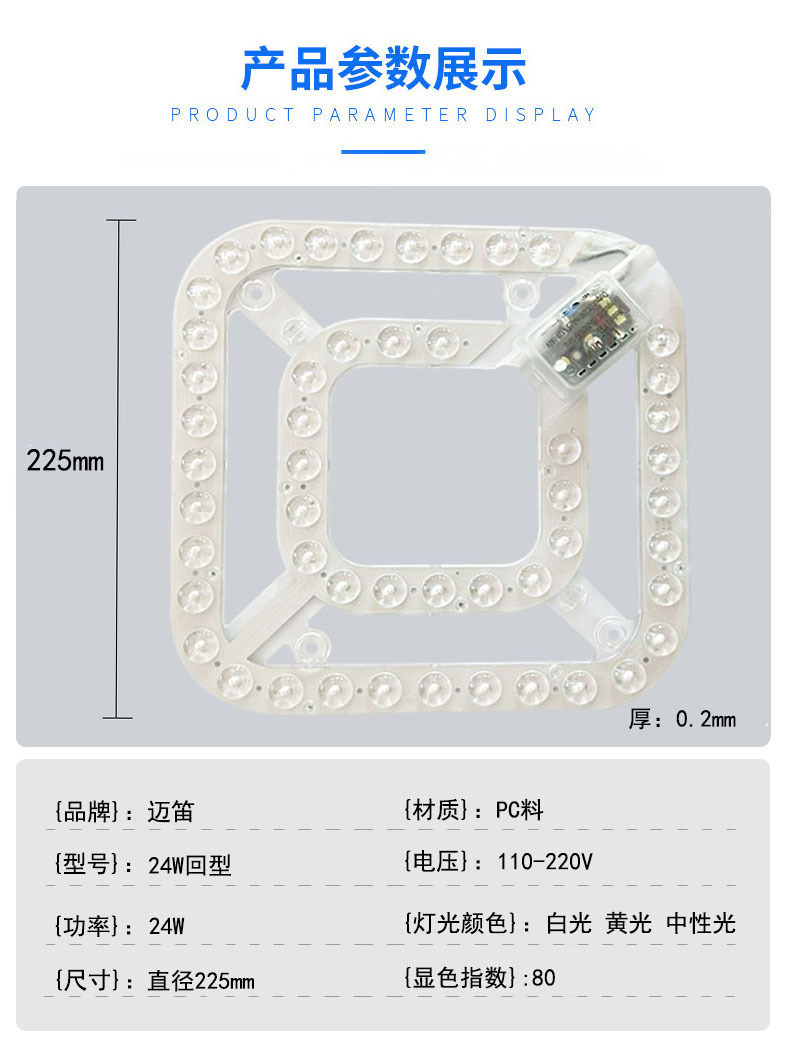 팬 램프 24W 백형 LED 심지 광원 모듈 슈퍼 브라이트 에너지 절약 3 색 디밍 비 스트로보 스코픽 천장 램프
