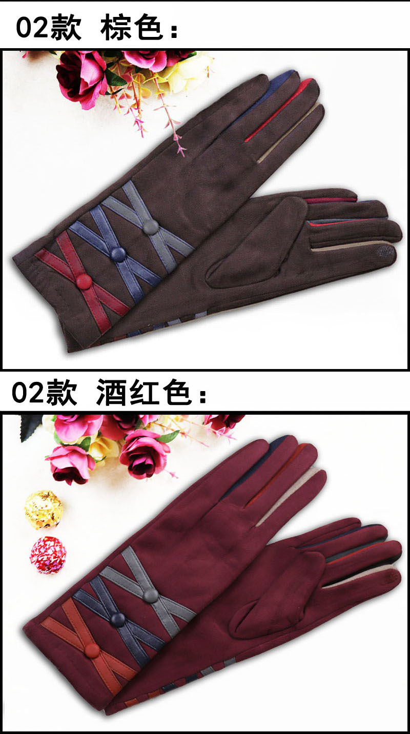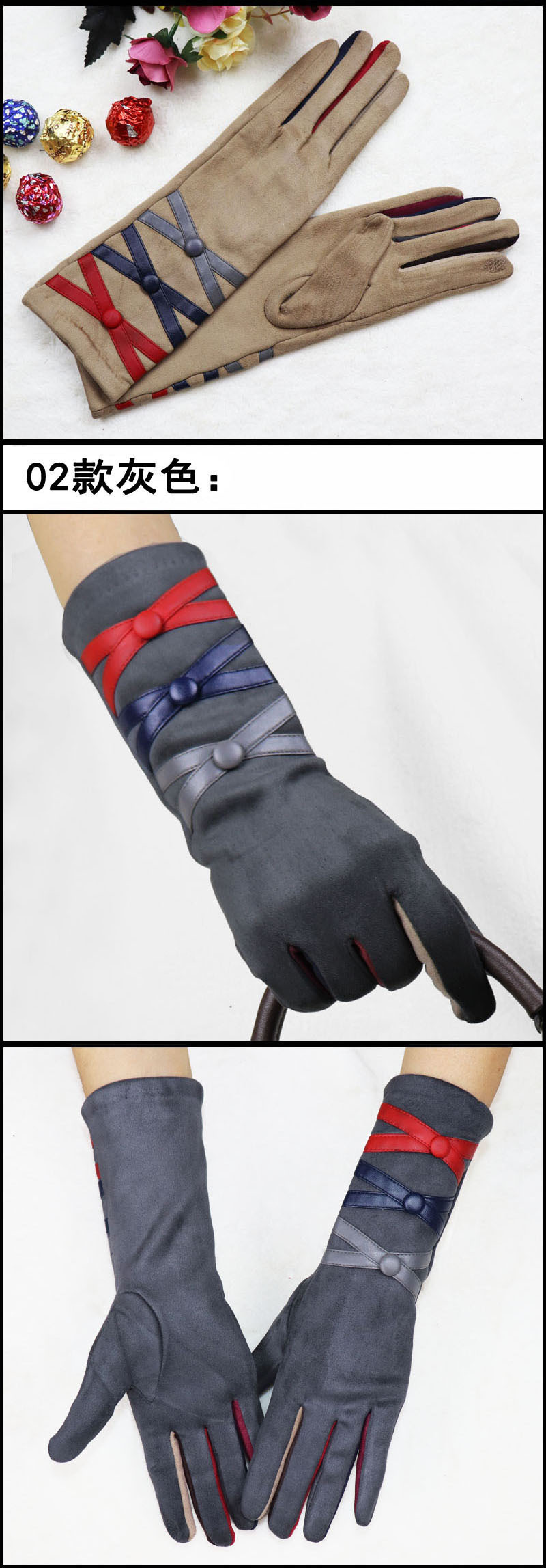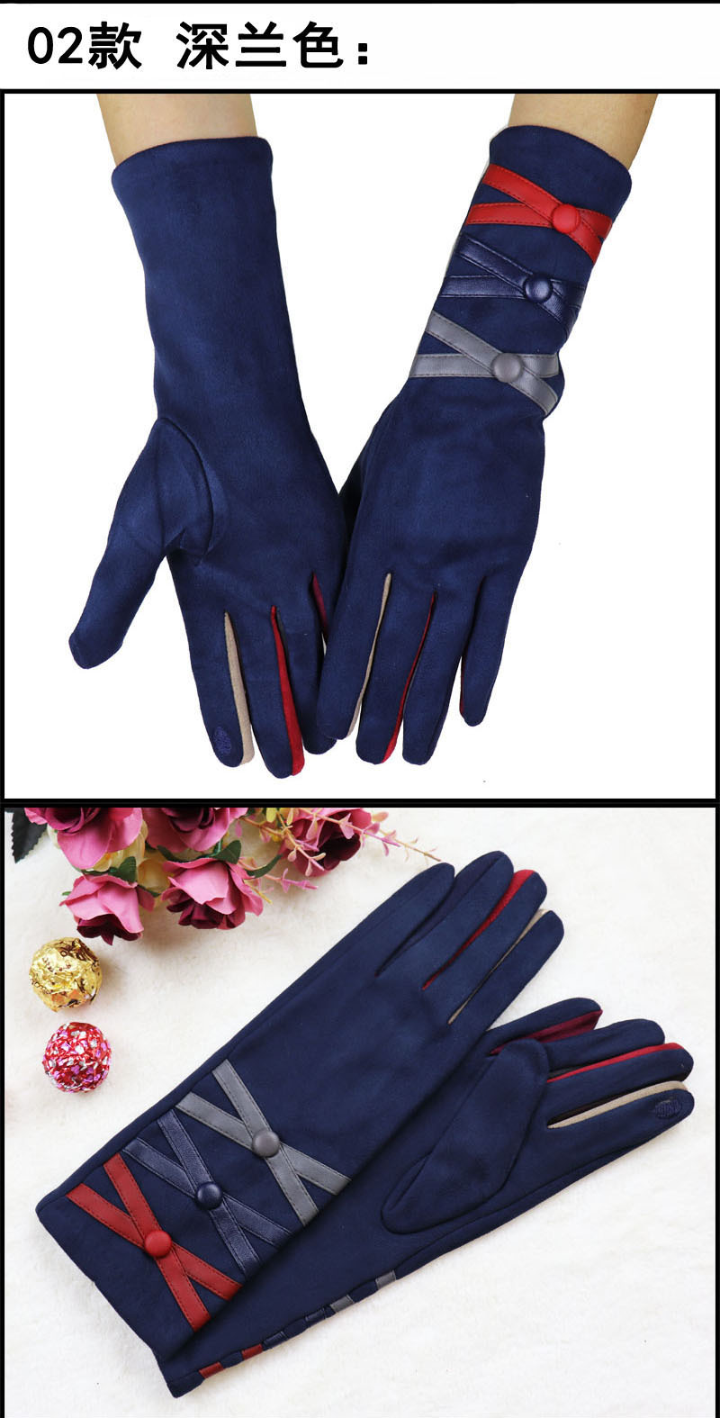중간 길이 숙녀 장갑 모조 스웨이드 사슴 가죽 벨벳 원단 기모 따뜻한 터치 스크린 색상 가을과 겨울 새로운 패션