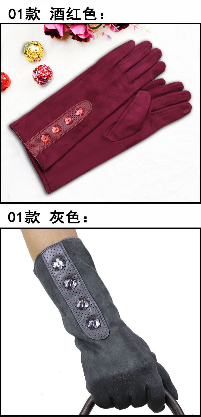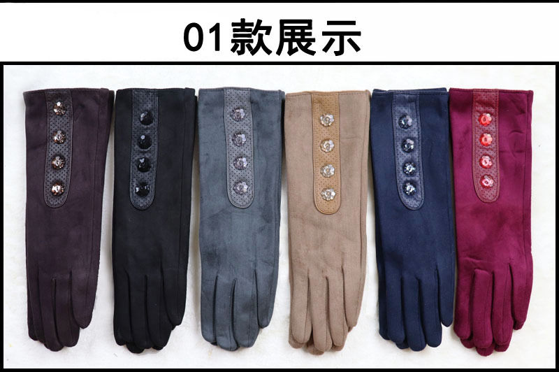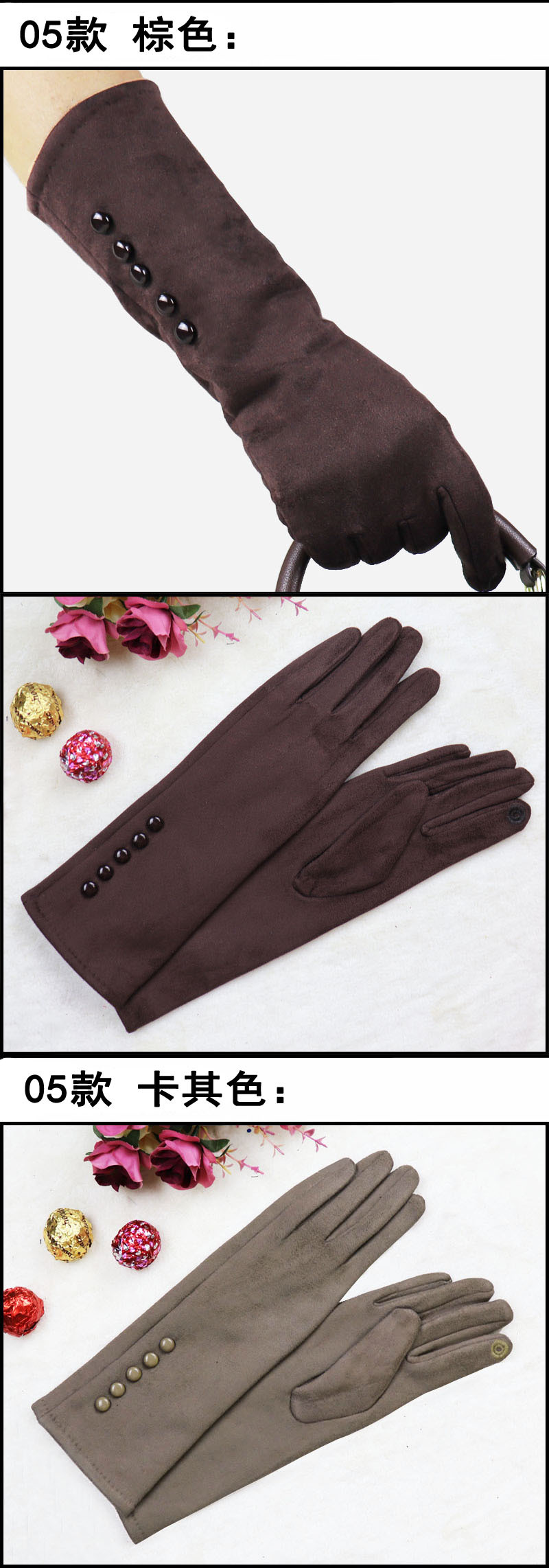 중간 길이 숙녀 장갑 모조 스웨이드 사슴 가죽 벨벳 원단 기모 따뜻한 터치 스크린 색상 가을과 겨울 새로운 패션스토어 가기