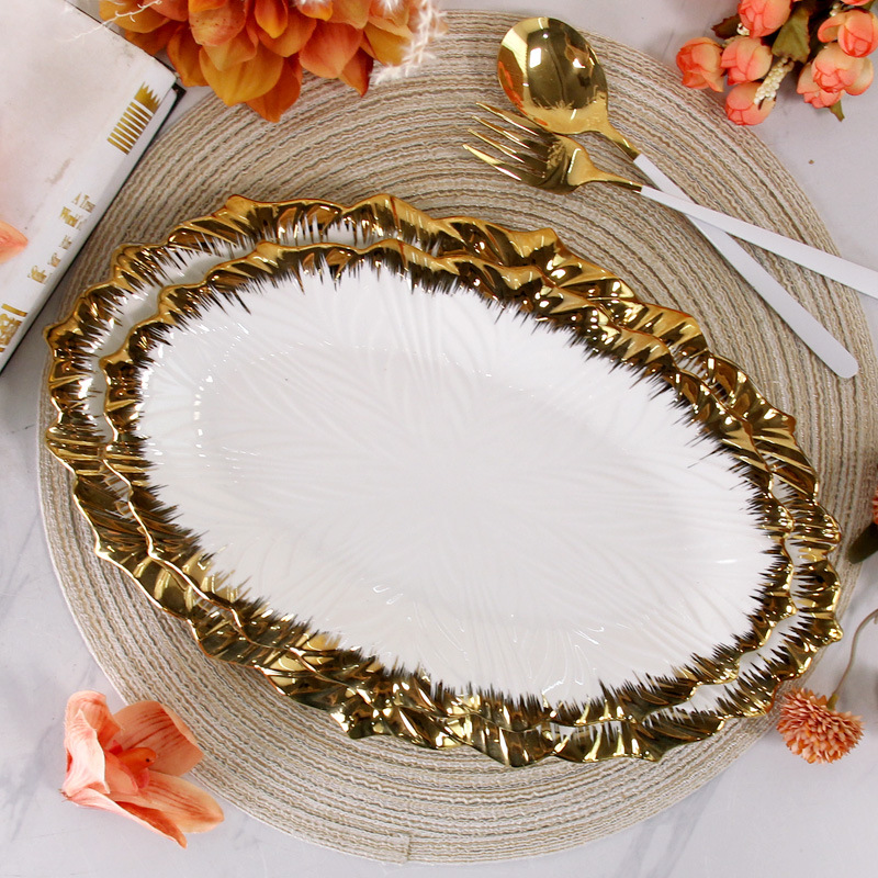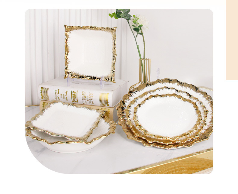 라이트 럭셔리 호텔 세라믹 식기 세트 디너 플레이트 고급 센스 프놈펜 스윕 골드 플레이트 스테이크 플레이트 보울 플레이트 웨스턴 푸드 도매