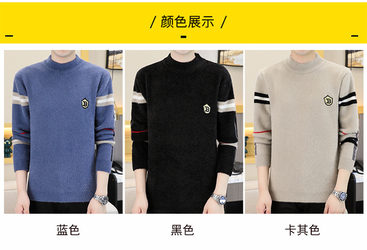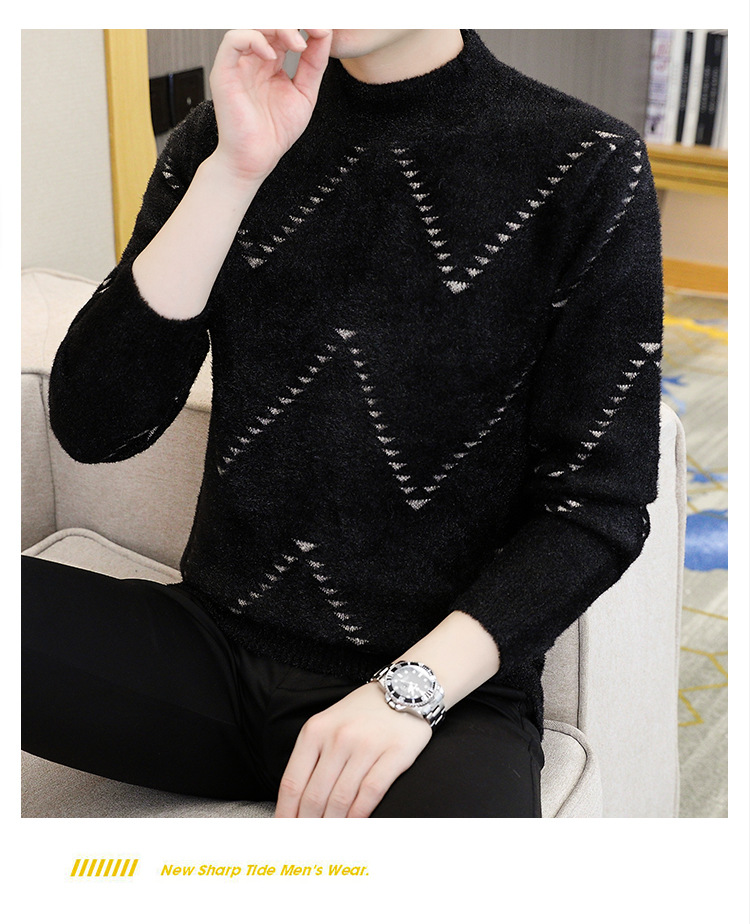 밍크 벨벳 스웨터 남성용 하프 터틀넥베이스 니트 스웨터 2023 가을과 겨울 새로운 폭발 따뜻한 미드 칼라 겨울 스웨터