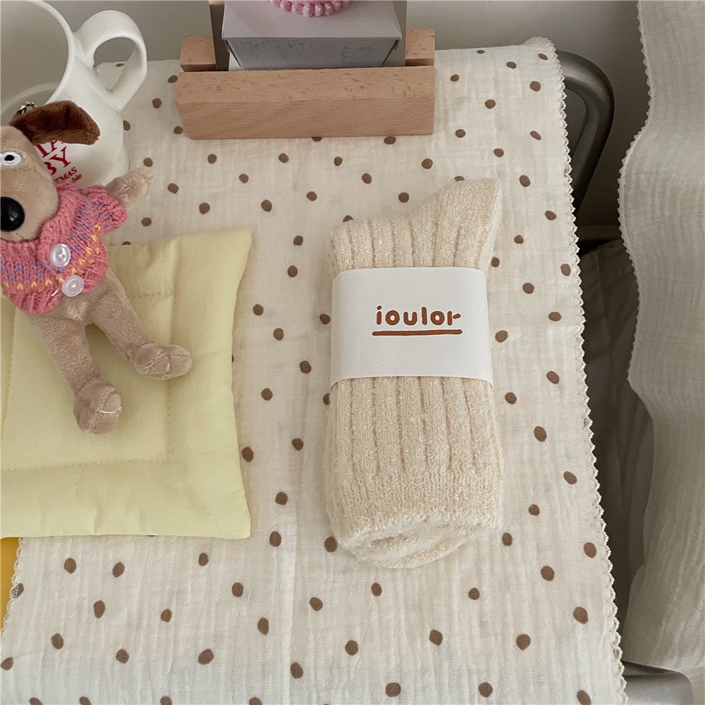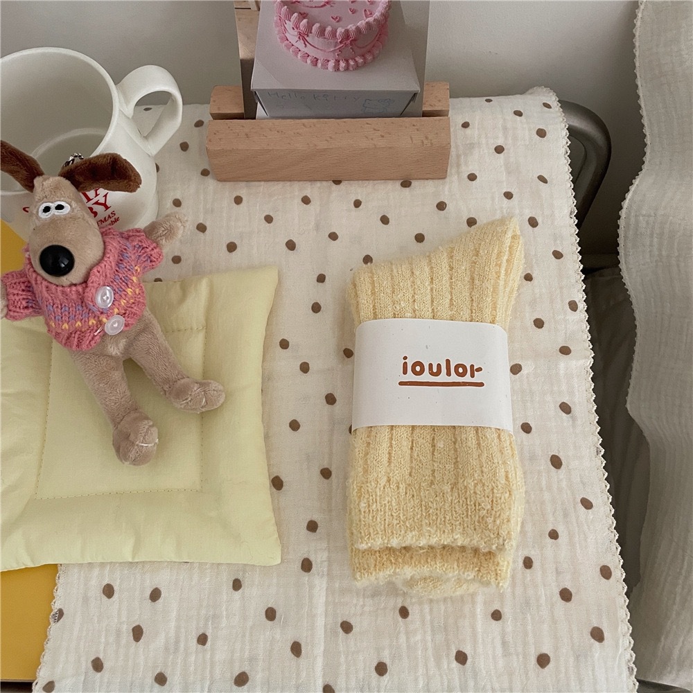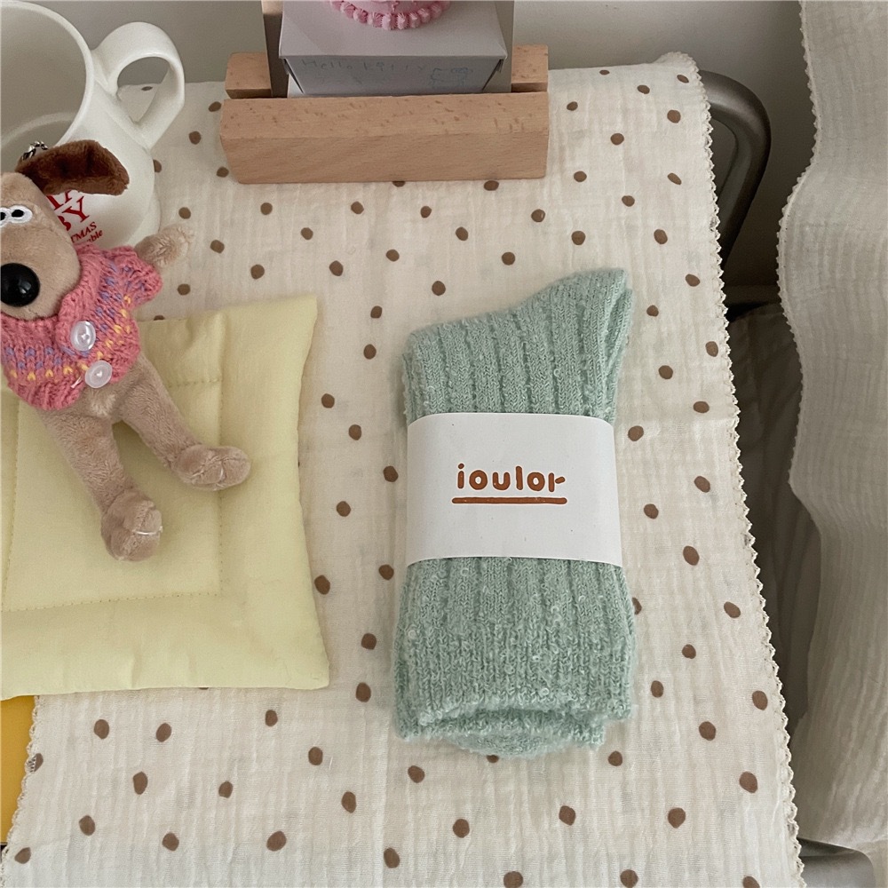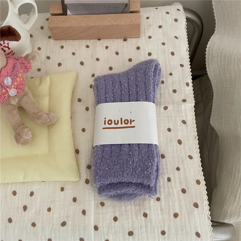 IOULOR 겨울 두꺼운 양털 양말 단색 일본식 따뜻한 쌍 양말 미드 튜브 여성용 혼합 양털 스택 양말