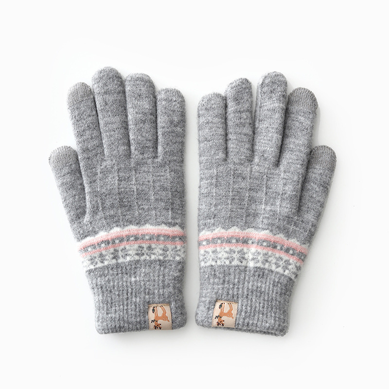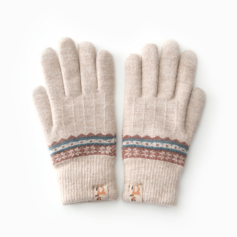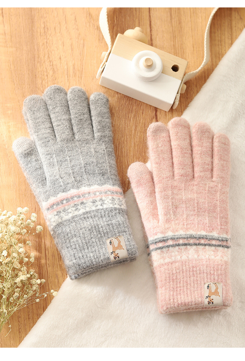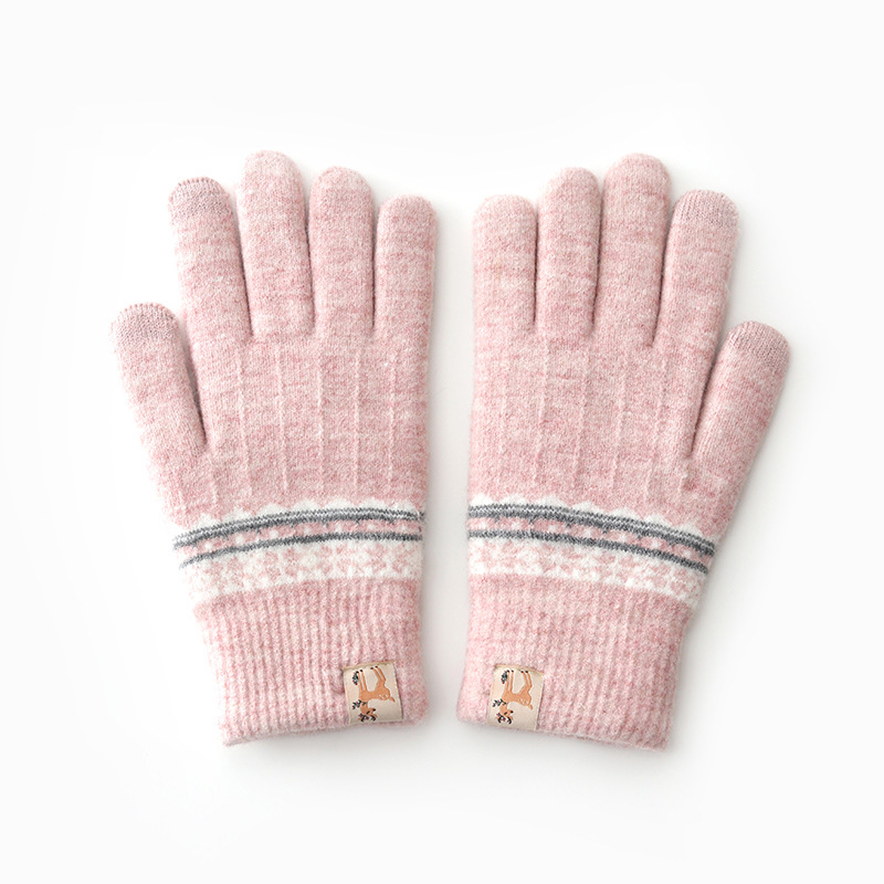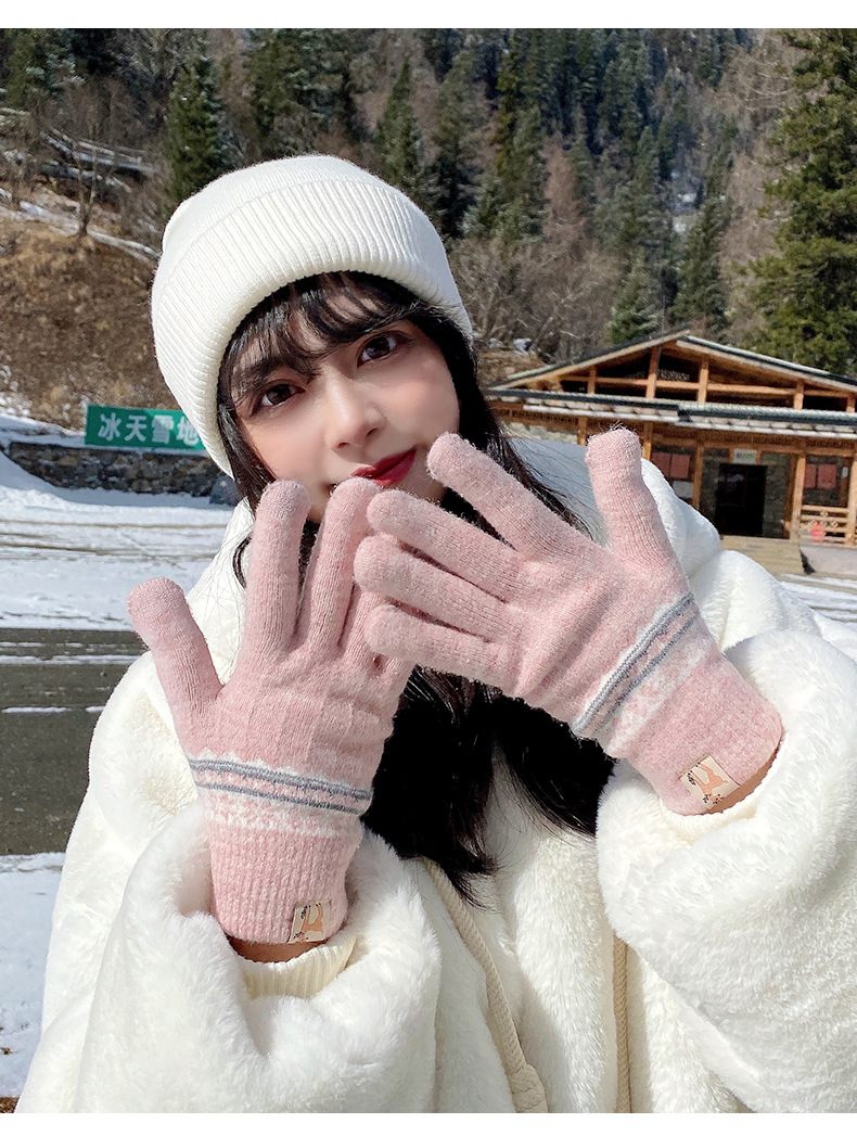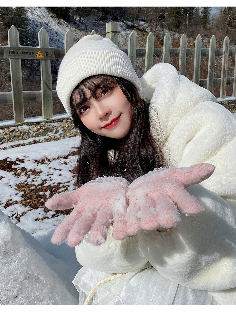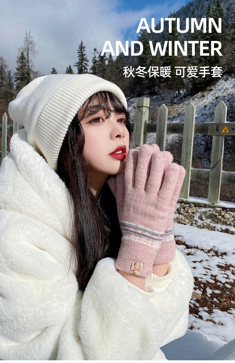 봉제 장갑 여성용 겨울 한국식 터치 스크린 두꺼운 따뜻한 니트 울 자전거 방한 겨울 학생 손가락