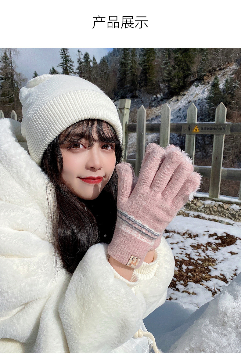 봉제 장갑 여성용 겨울 한국식 터치 스크린 두꺼운 따뜻한 니트 울 자전거 방한 겨울 학생 손가락스토어 가기