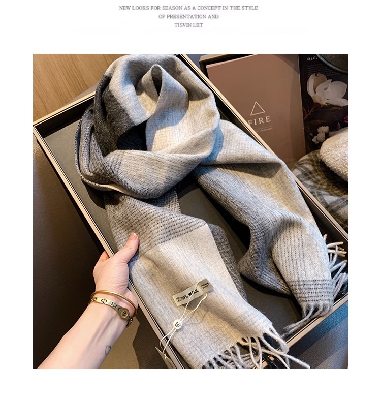 무거운 호주 울 심플 모든 매치 격자 무늬 울 스카프 여성용 커플 좁은 긴 가을과 겨울 두꺼운 숄스토어 가기