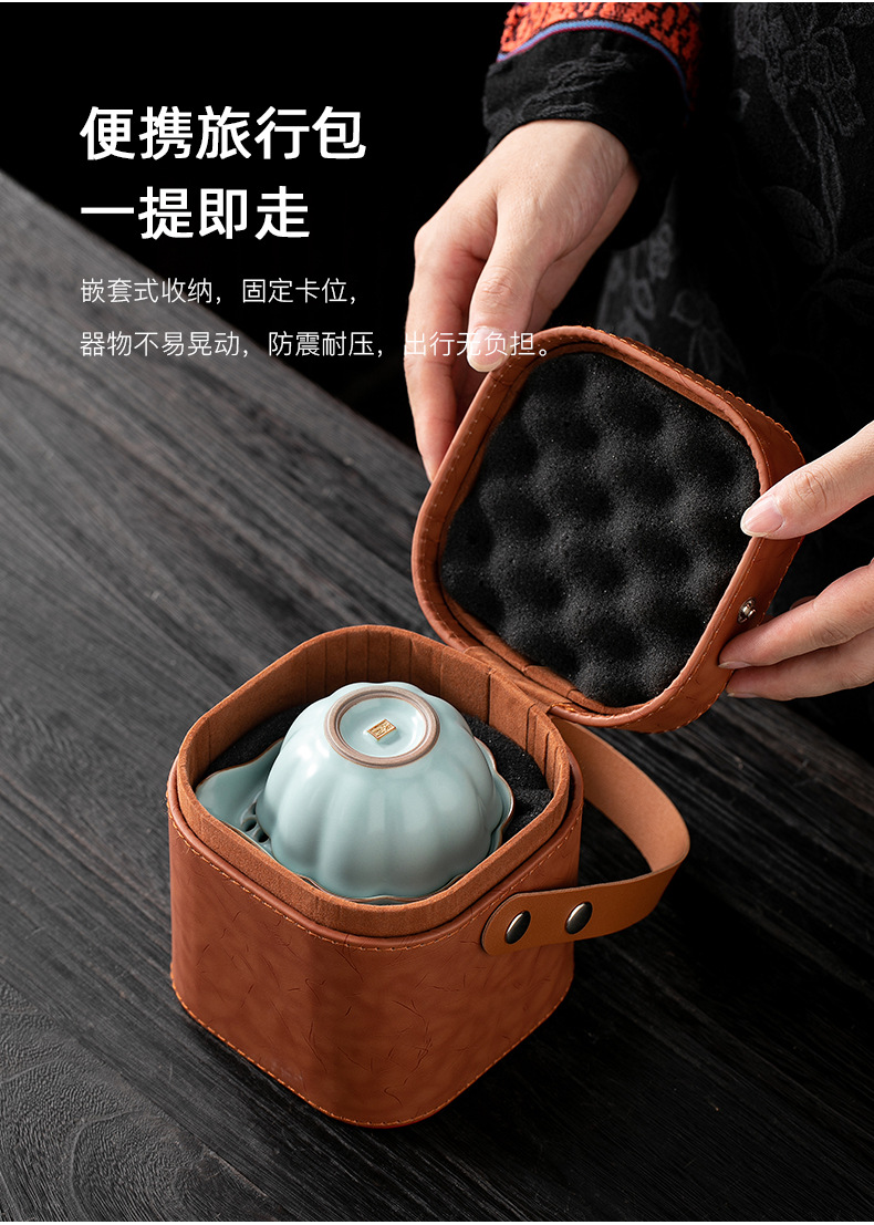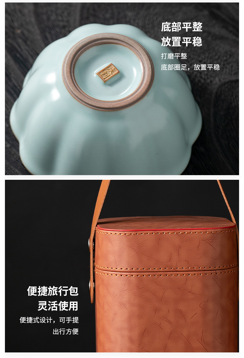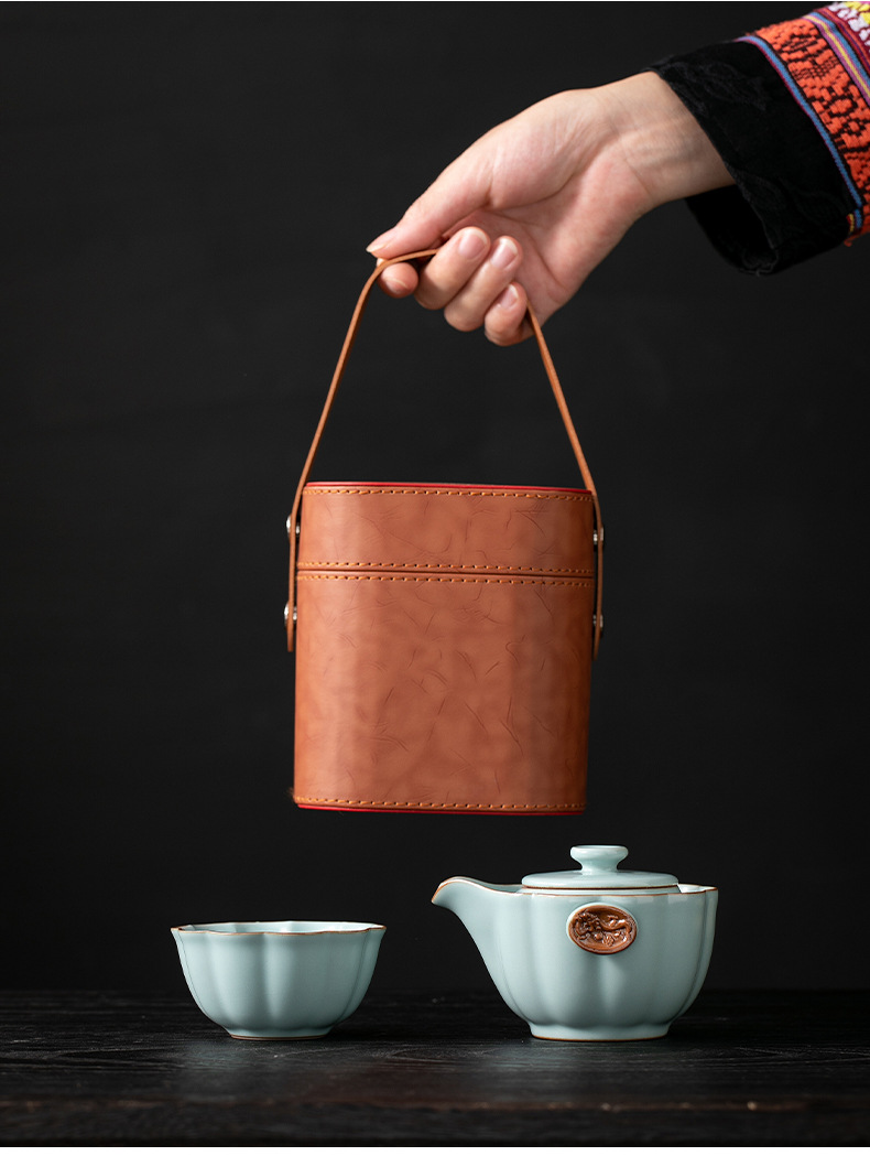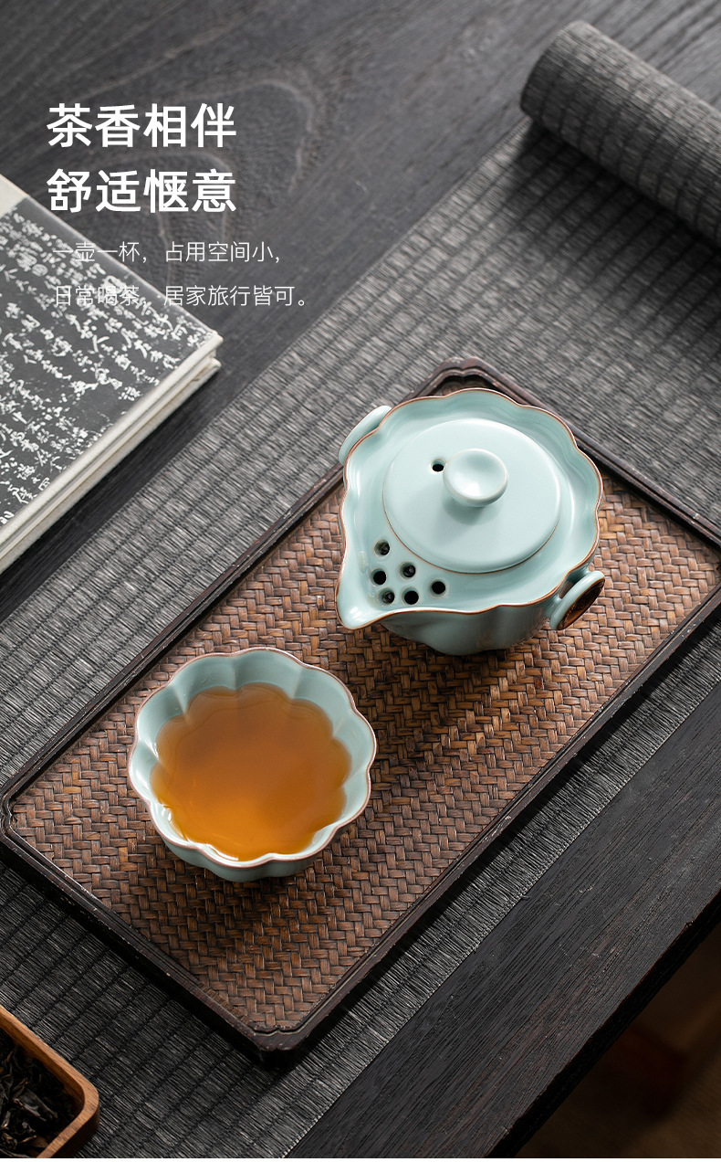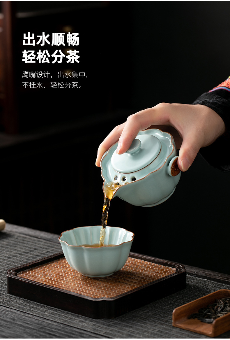 Ru Kiln 익스프레스 컵 한 냄비 1 인용 특수 휴대용 찻주전자 찻잔 휴대용 여행 차 세트 세트