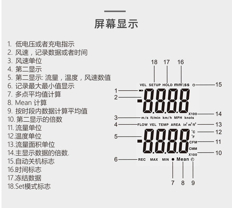 CEM Huashengchang 풍속계 디지털 고정밀 휴대용 공기량 테스터 DT-618/619/620/82