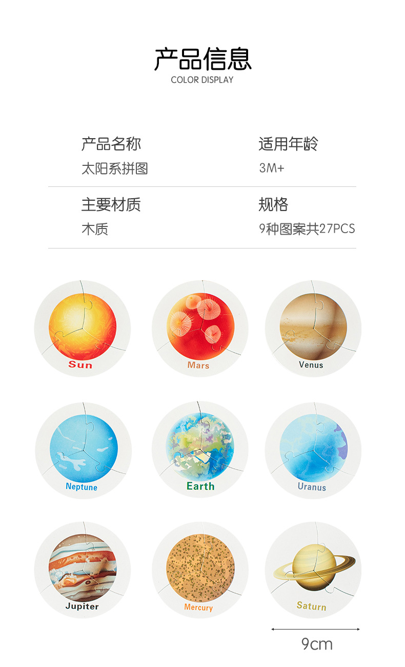 국경 간 어린이 조기 교육, 지능 및인지, 우주, 행성, 태양계, 직소 퍼즐, 매칭 보드, 나무 장난감 도매스토어 가기