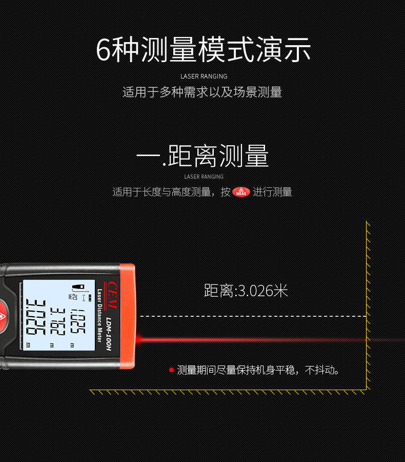 CEM huashengchang 레이저 거리 측정기 고정밀 적외선 거리 측정기 측정 실내 기기 야외 눈부심 방지 LDM-60H