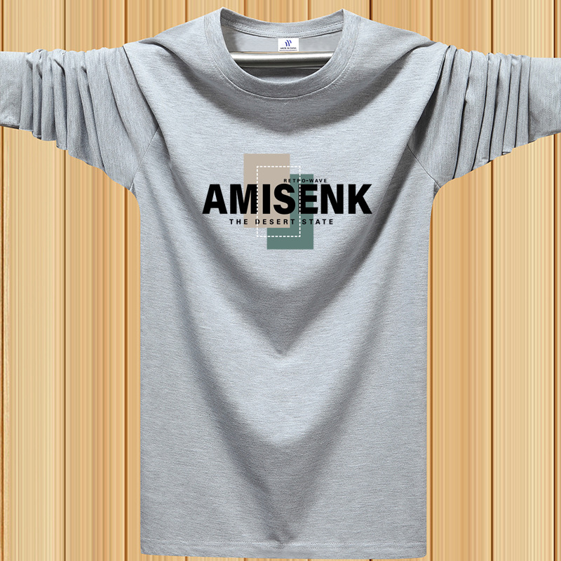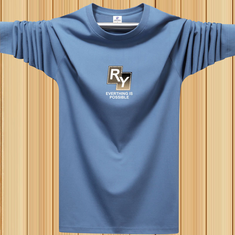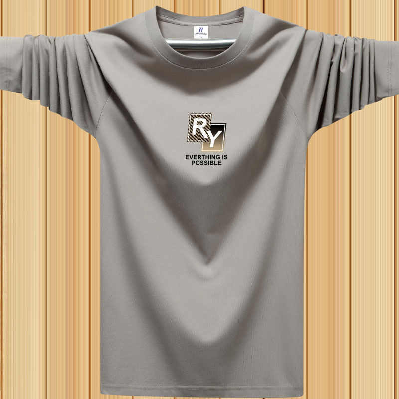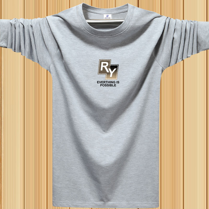 봄과 가을 긴 소매 티셔츠 남자의 순면 탑 라운드 넥 느슨한 플러스 사이즈 남자의 가을 옷 전국 패션 티셔츠 기본 셔츠 옷