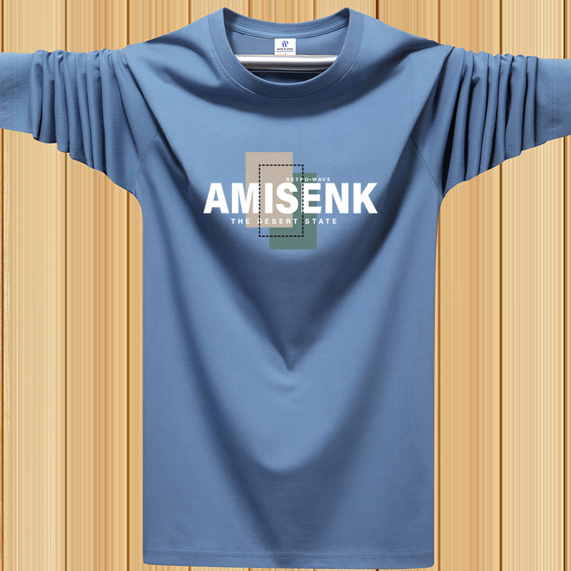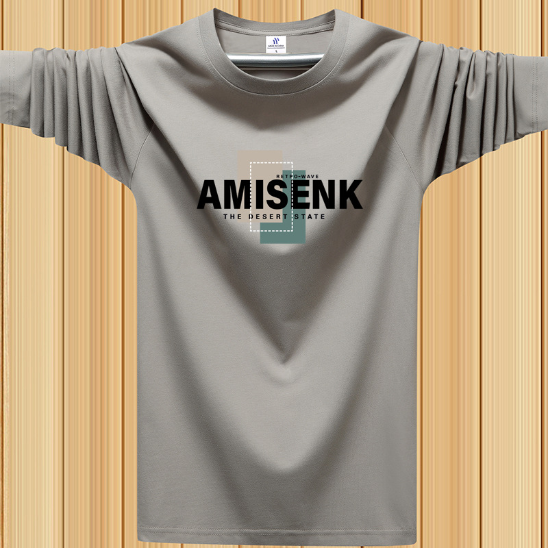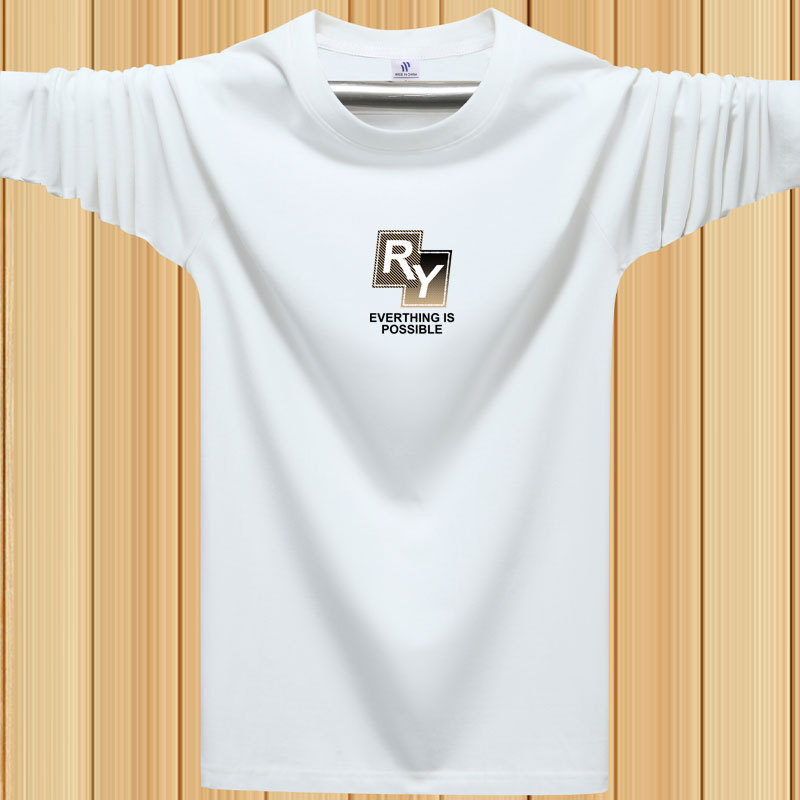 봄과 가을 긴 소매 티셔츠 남자의 순면 탑 라운드 넥 느슨한 플러스 사이즈 남자의 가을 옷 전국 패션 티셔츠 기본 셔츠 옷스토어 가기