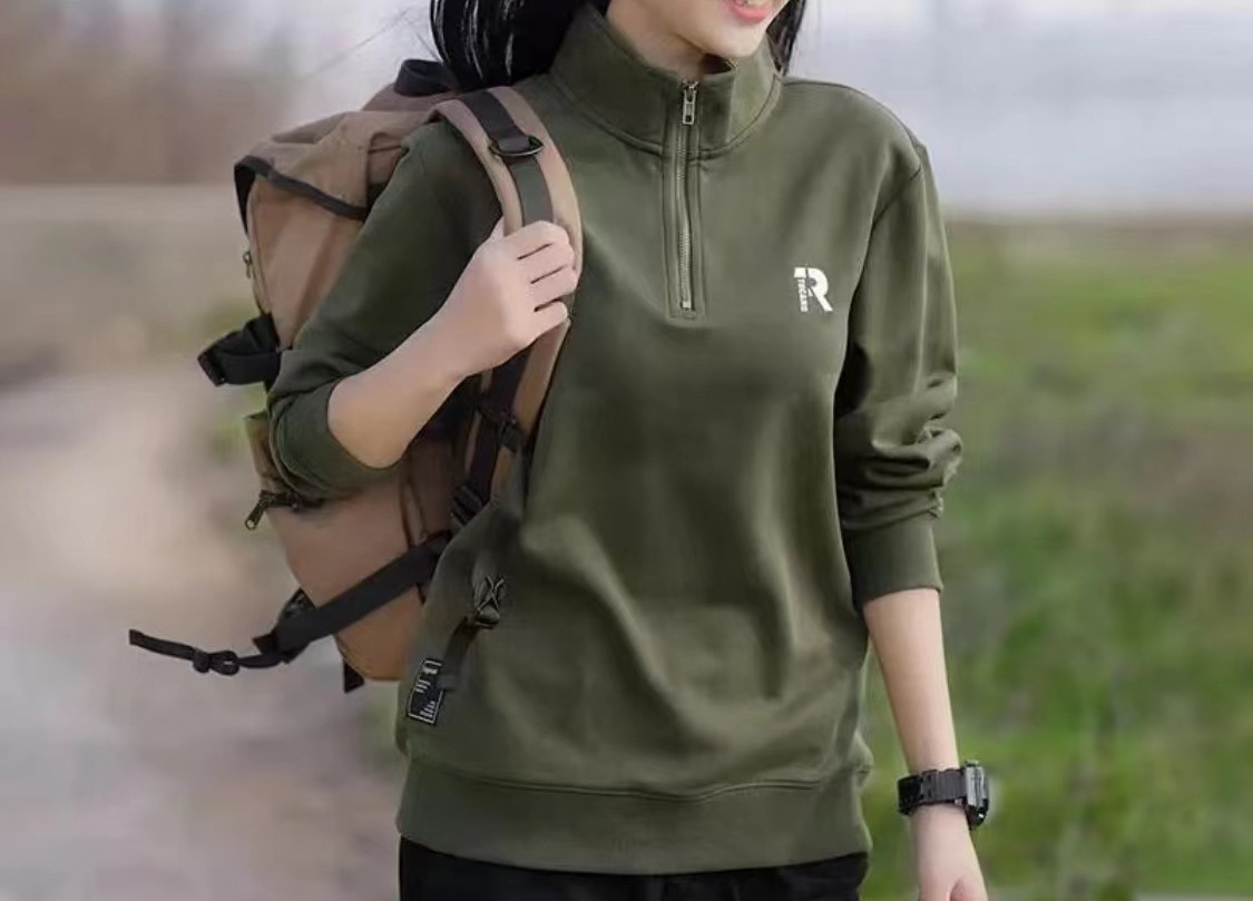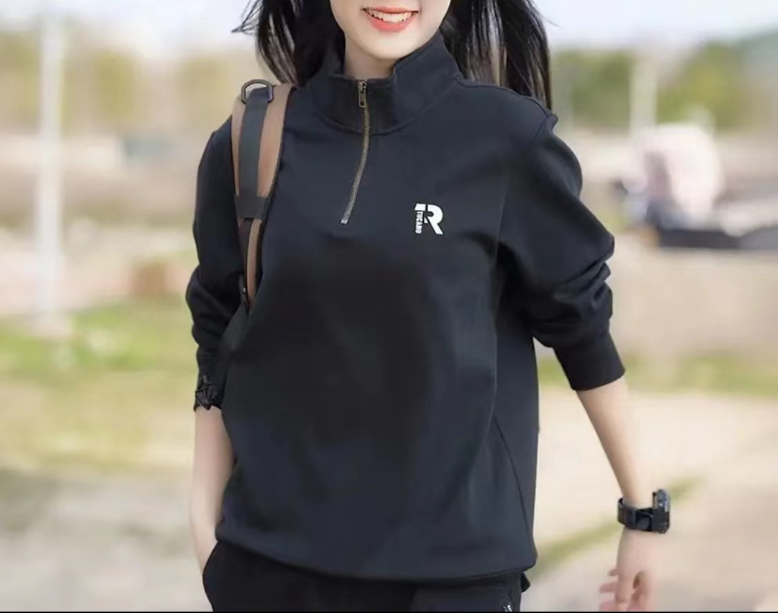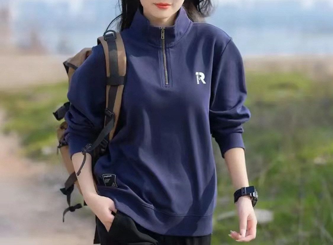 가을 겨울 반지퍼 풀오버 긴팔 스웨트셔츠 커플 스타일 다용도 루즈핏 자수 레터링 캐주얼 상의 플러스 벨벳 버전