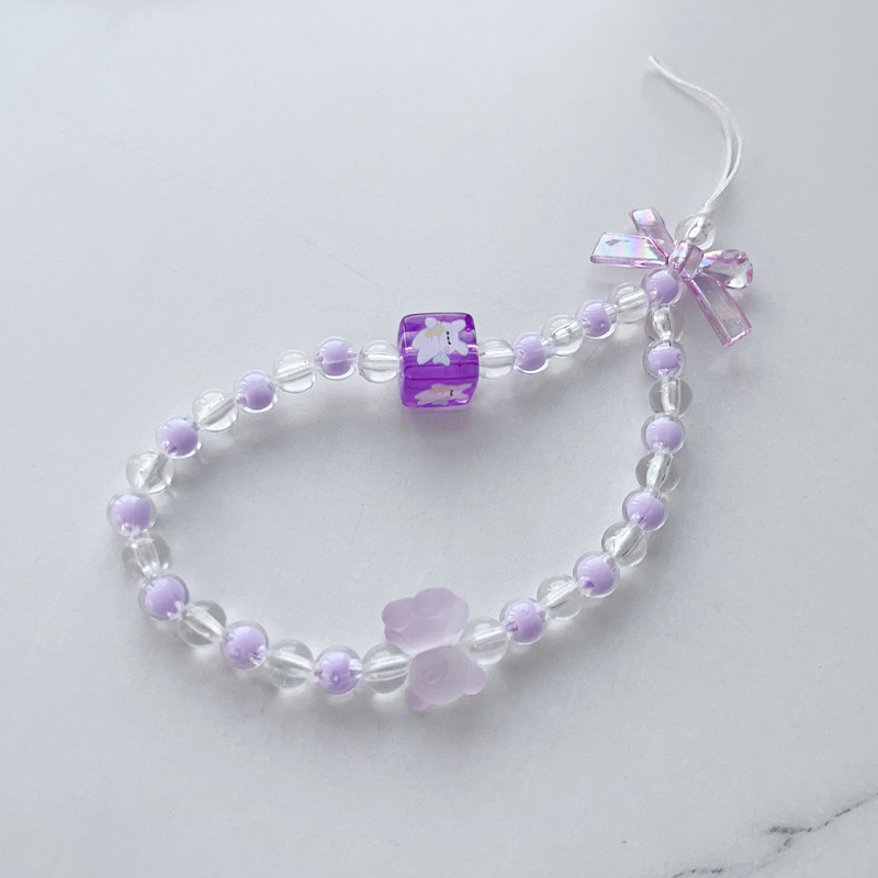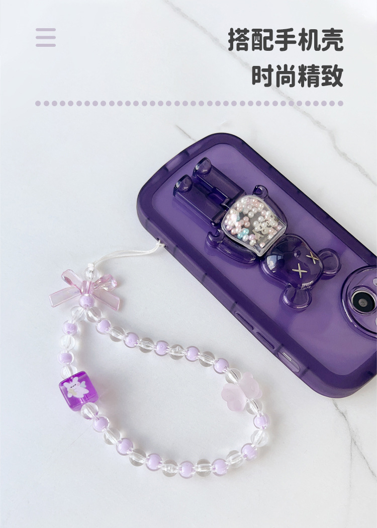 새로운 보라색 곰 큐브 휴대 전화 끈 달콤한 활 모든 매치 손목 범용 휴대 전화 케이스 교수형 장식스토어 가기