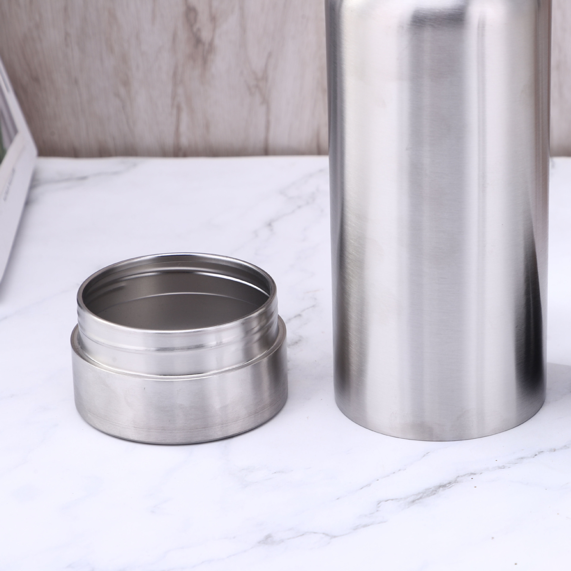 ①品名:304不锈钢可拆卸太空壶 25oz户外登山壶 储物杯 保温保冷瓶