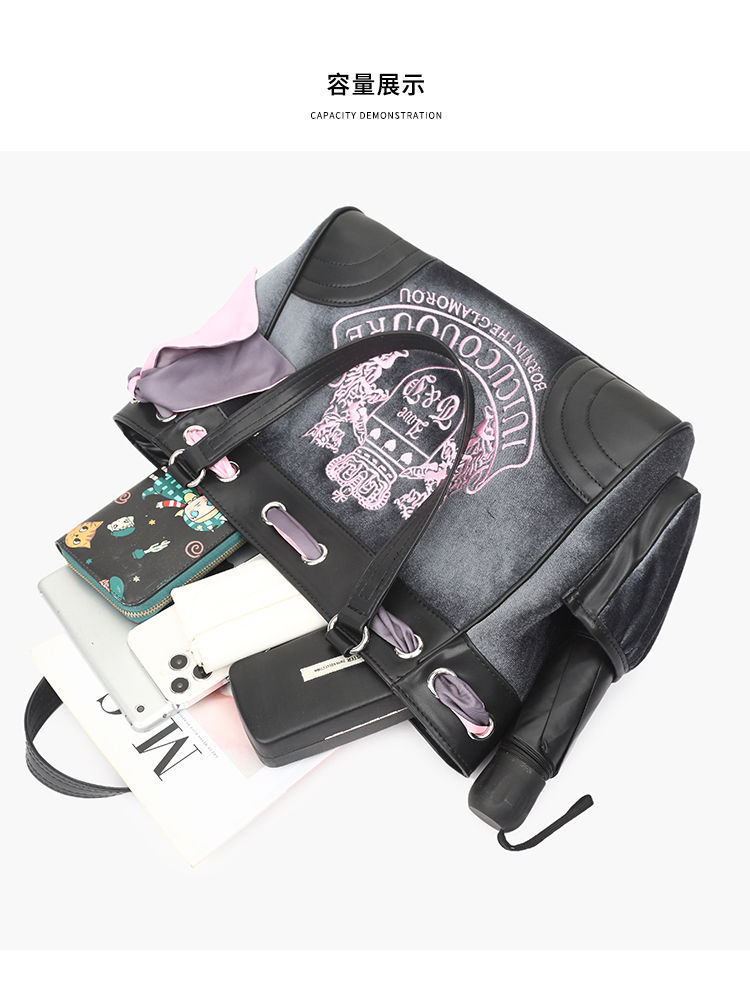 Ins 인터넷 연예인 같은 스타일 복고풍 유행 뜨거운 소녀 대비 색 휴대용 어깨 토트 백 2024 새로운 여성 가방