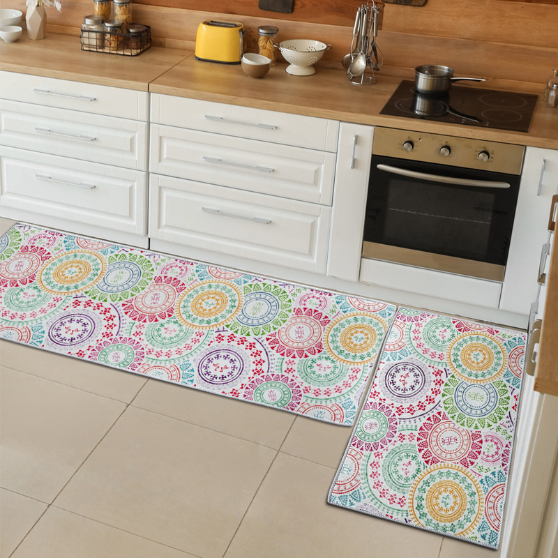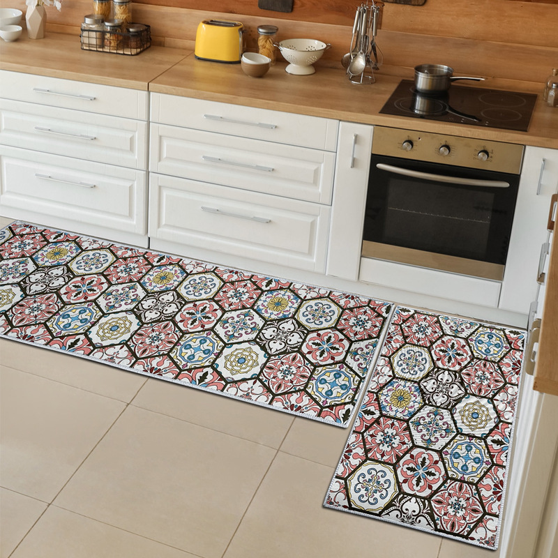 스퀘어 레트로 크리스탈 벨벳 홈 주방 흡수성 미끄럼 방지 매트 세트 크로스 보더 재고 부직포 카펫