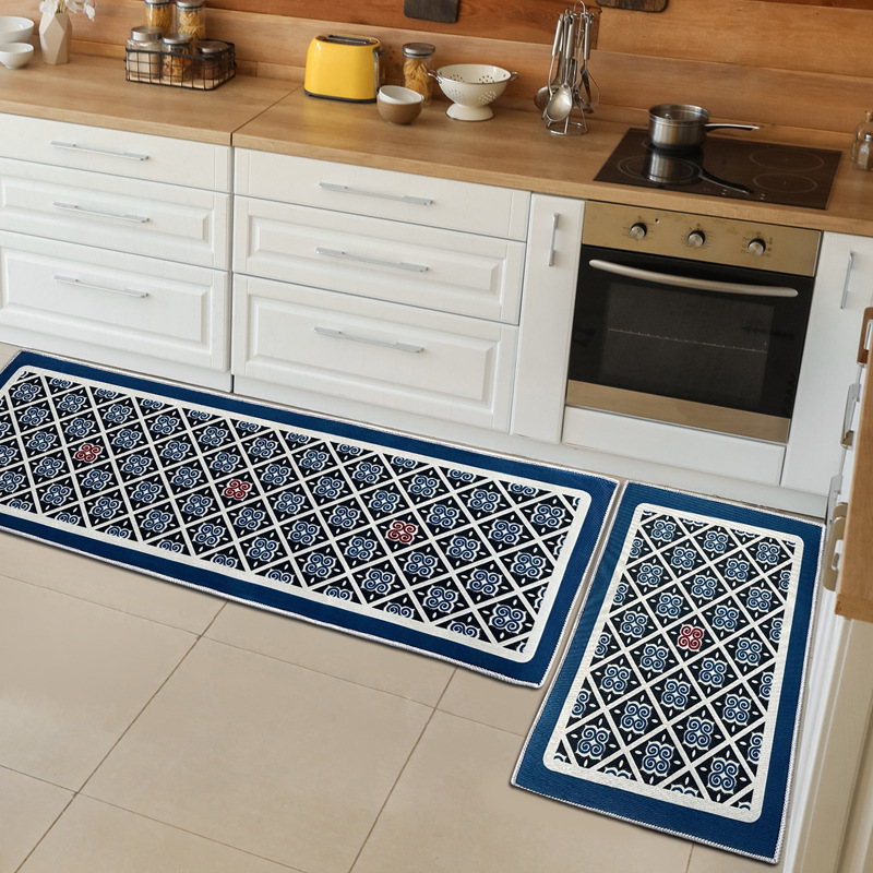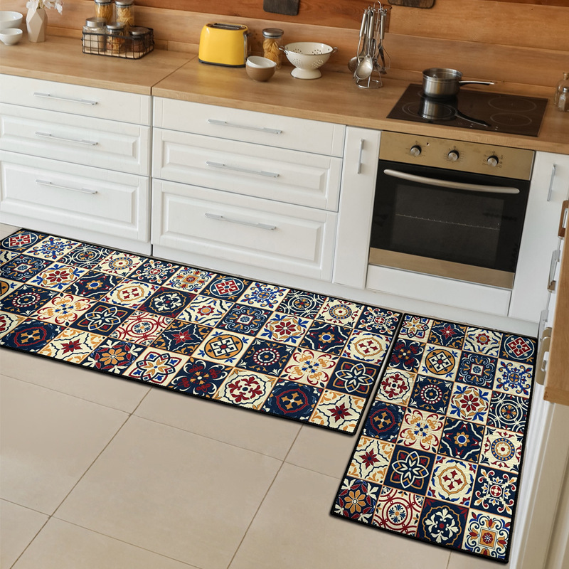 스퀘어 레트로 크리스탈 벨벳 홈 주방 흡수성 미끄럼 방지 매트 세트 크로스 보더 재고 부직포 카펫스토어 가기