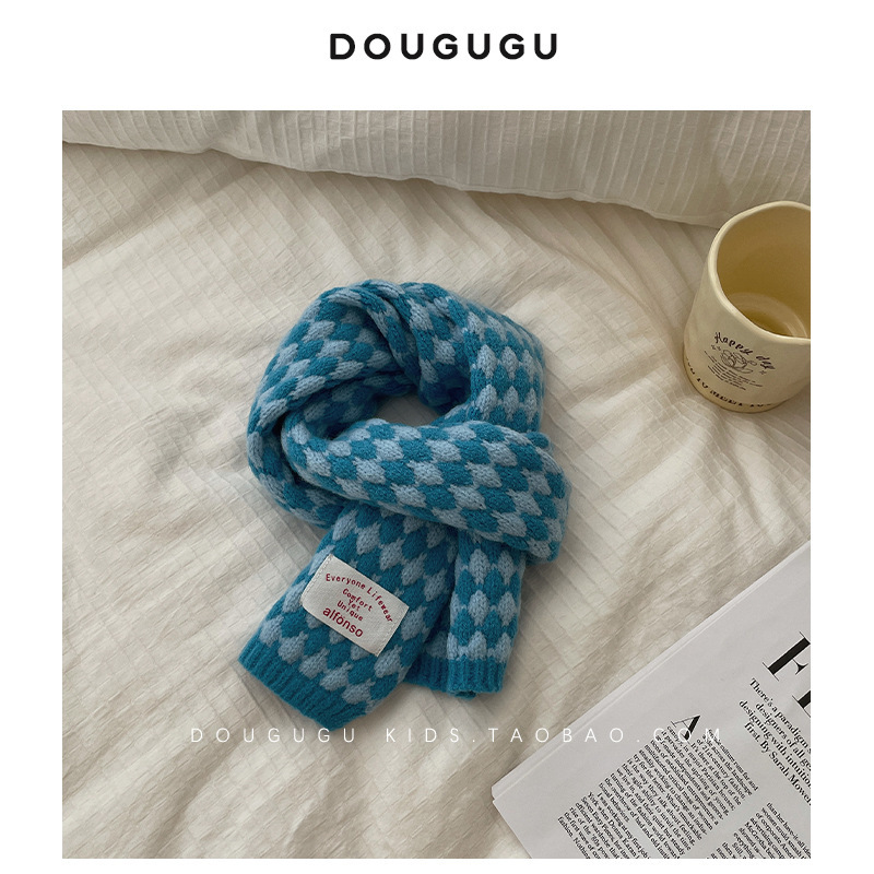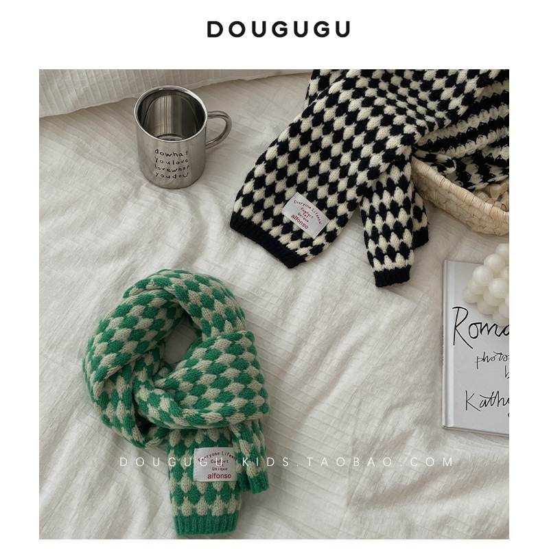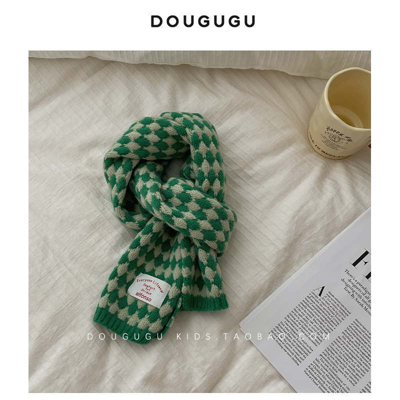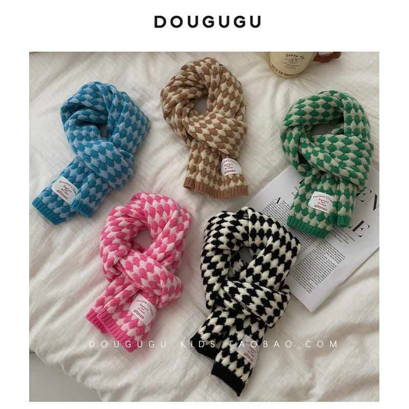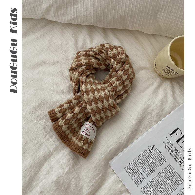 부모-자식 니트 한국 스타일 작은 격자 무늬 스카프 대학 스타일 긴 스카프 소년과 소녀를위한 따뜻한 방풍 가을과 겨울