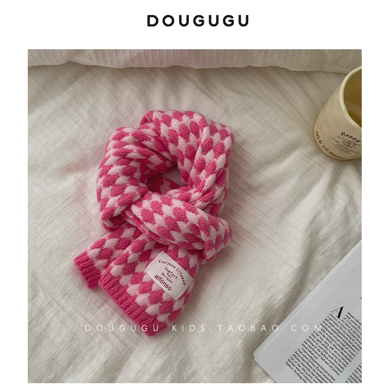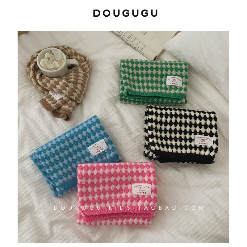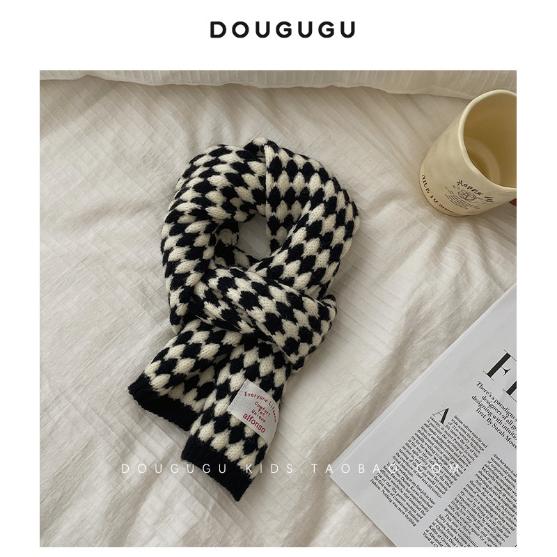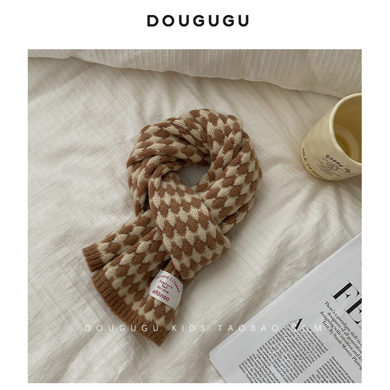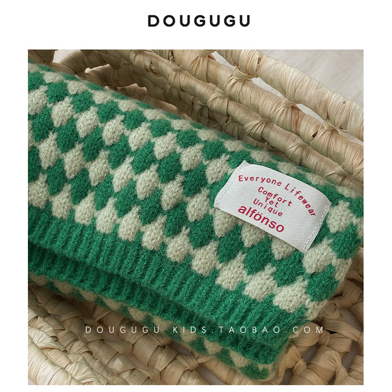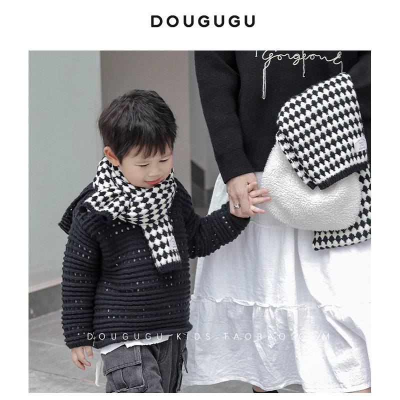 부모-자식 니트 한국 스타일 작은 격자 무늬 스카프 대학 스타일 긴 스카프 소년과 소녀를위한 따뜻한 방풍 가을과 겨울