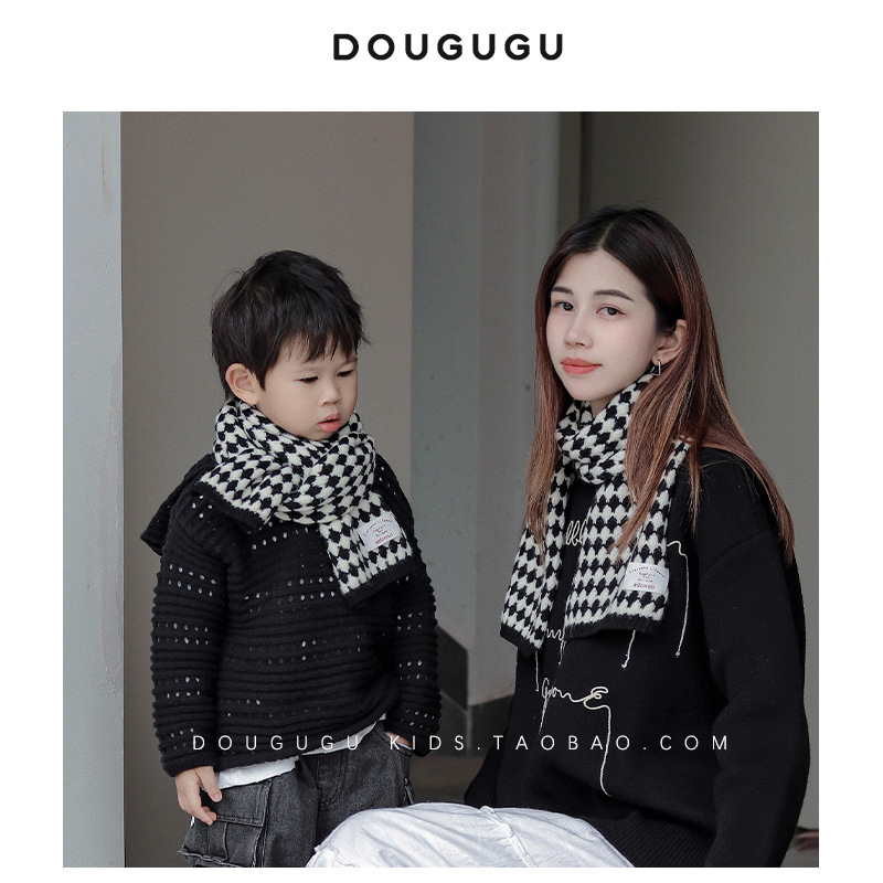 부모-자식 니트 한국 스타일 작은 격자 무늬 스카프 대학 스타일 긴 스카프 소년과 소녀를위한 따뜻한 방풍 가을과 겨울스토어 가기