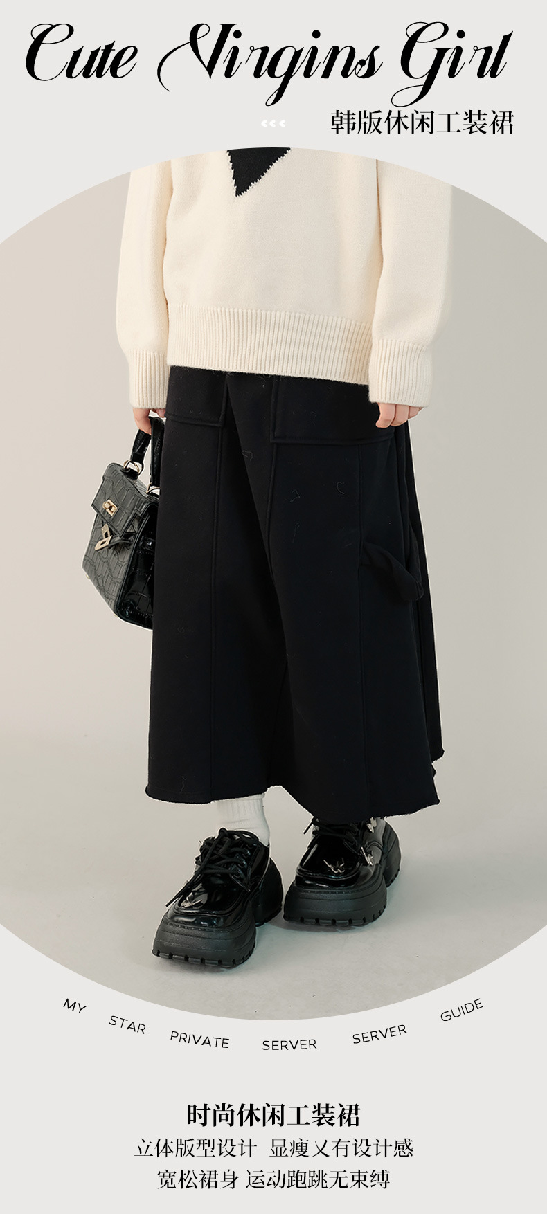 여자 스커트 봄 새로운 한국 스타일 캐주얼 작업복 스커트 어린이 스커트 유행 검은 색 높은 허리 중대형 아동복