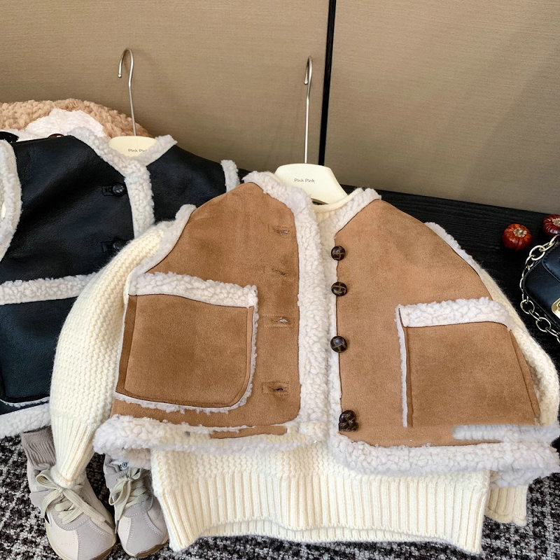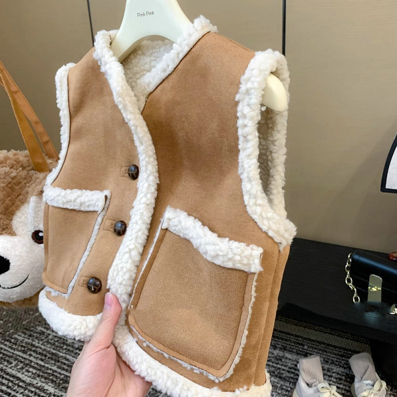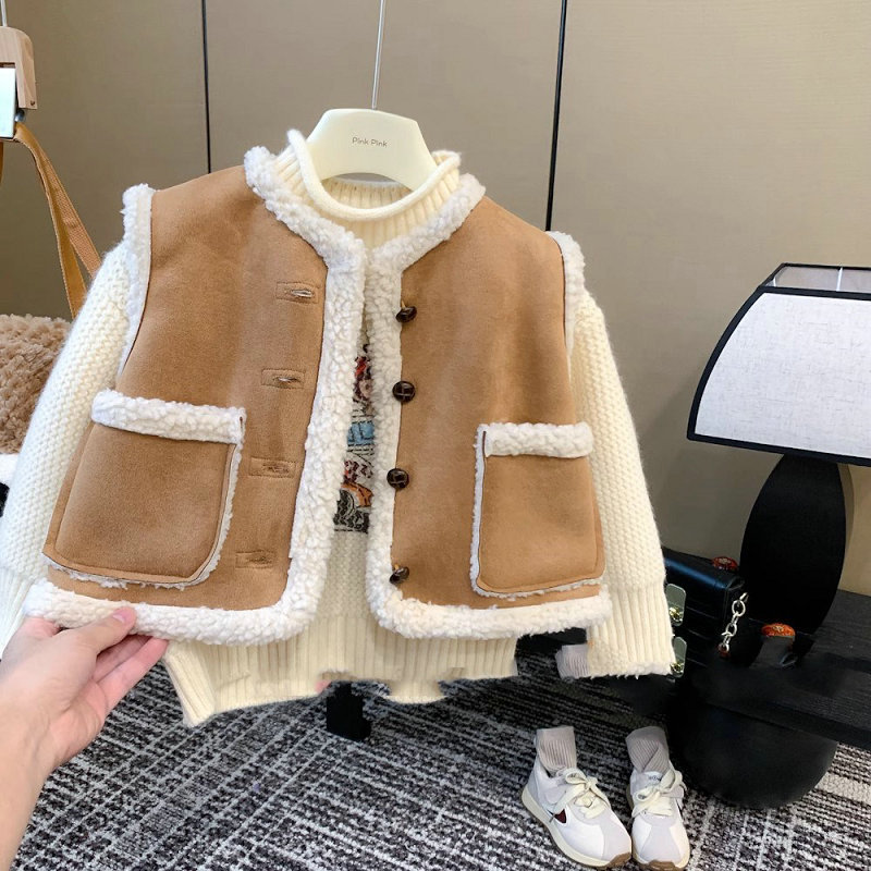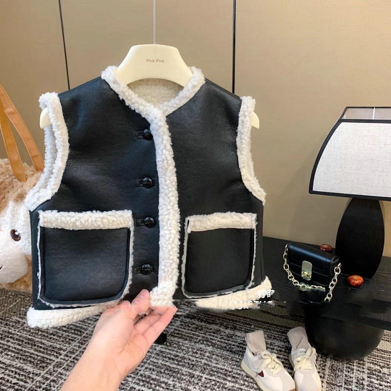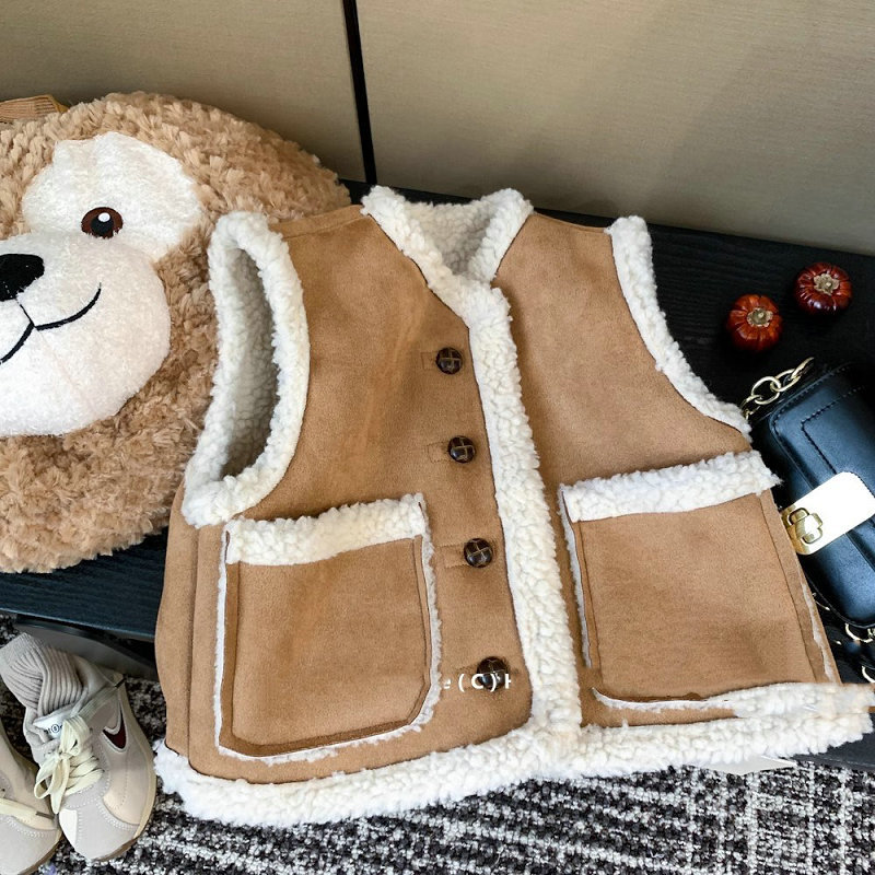 남아 여아 조끼 사슴가죽 혼합 양털 겨울 보온 조끼 상의 2025 신상품 수출 아동복스토어 가기
