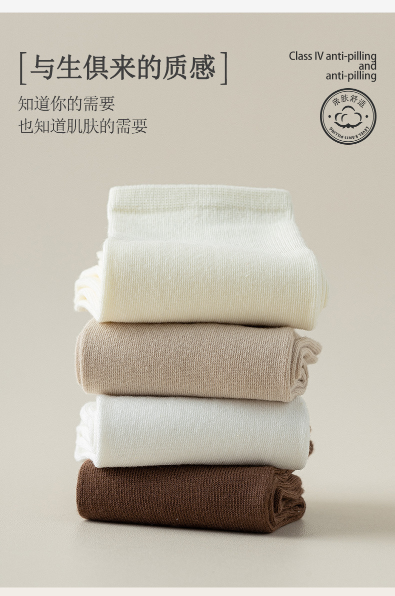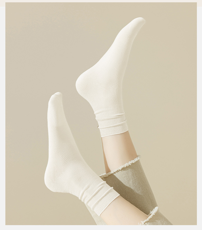 가을 새로운 다크 브라운 스타일 중간 길이 양말 간단한 기본 스택 양말 뼈없는 양말 면 화이트 Zhuji 양말