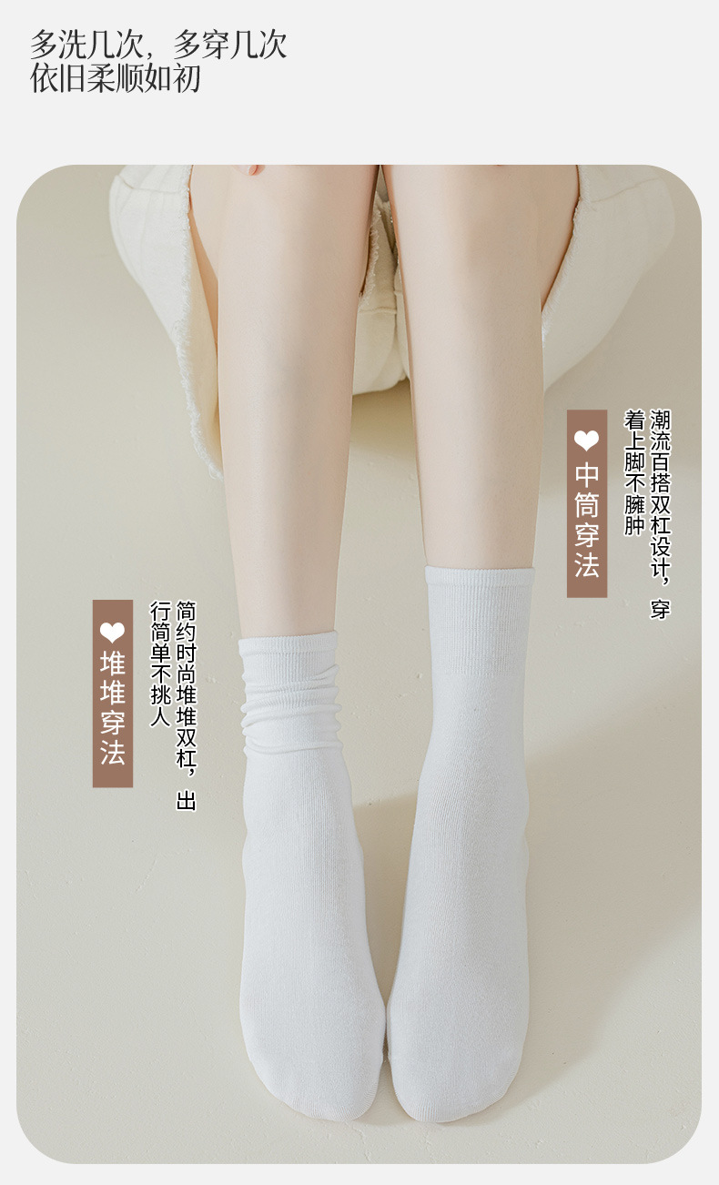 가을 새로운 다크 브라운 스타일 중간 길이 양말 간단한 기본 스택 양말 뼈없는 양말 면 화이트 Zhuji 양말스토어 가기